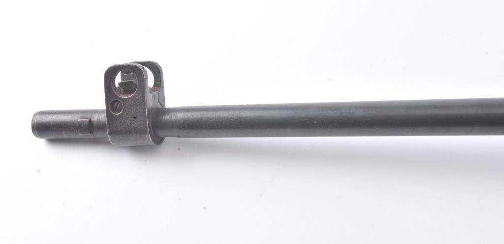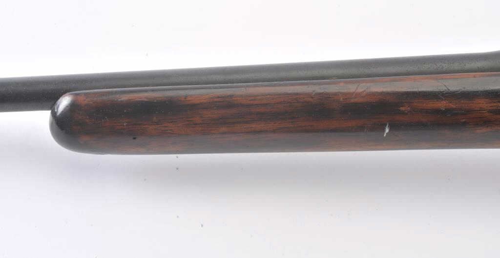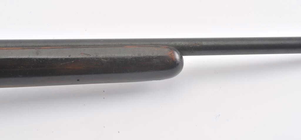 Sporterized British Enfield bolt action rifle, .303 British caliber, Serial #AB9272. The rifle is in fair overall condition with a 25” barrel. The rifle retains a significant amount of its military finishlight to moderate surface rust noted. The action is non-functioning and missing parts. The smooth wood stock is in fair condition with mars and compressions consistent with field use. The bore is fair, the action isnot working and the markings are legible. Est.: $150-$250. (C+R).