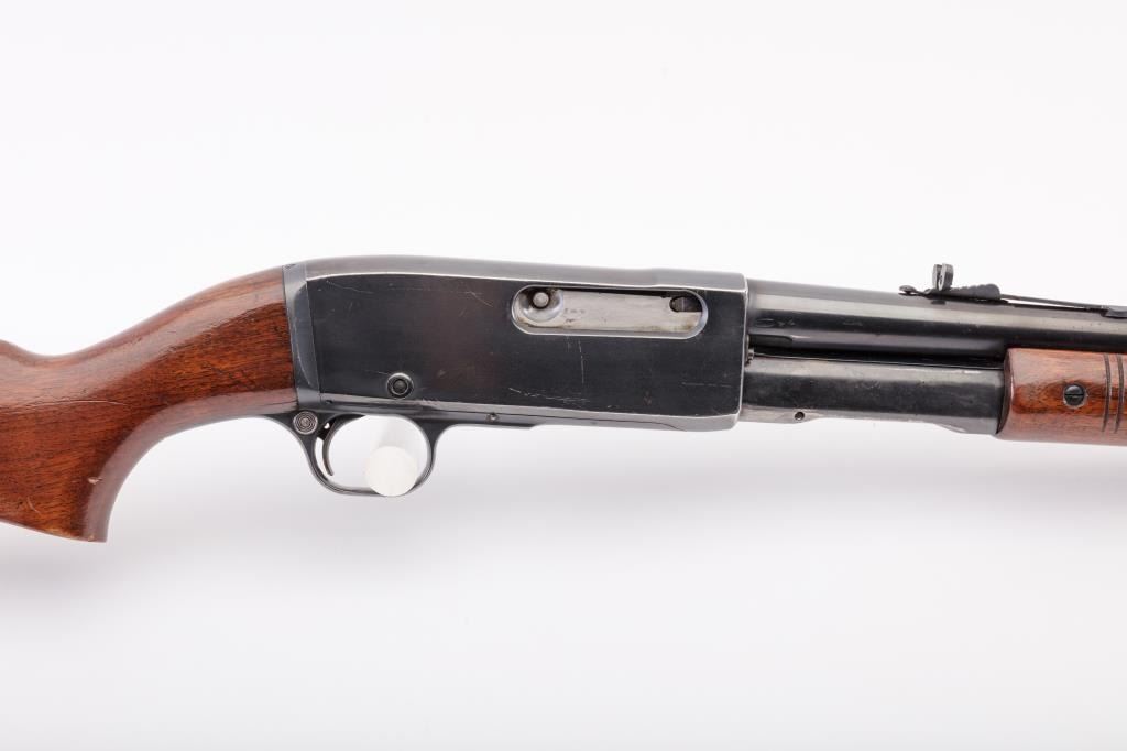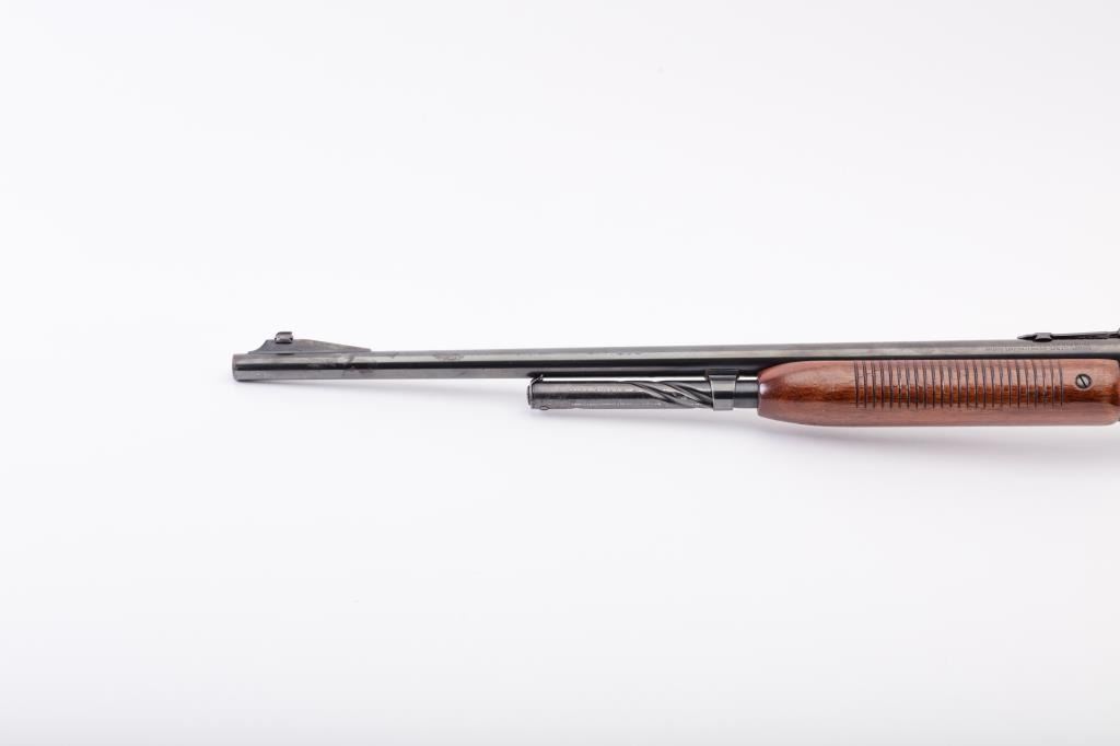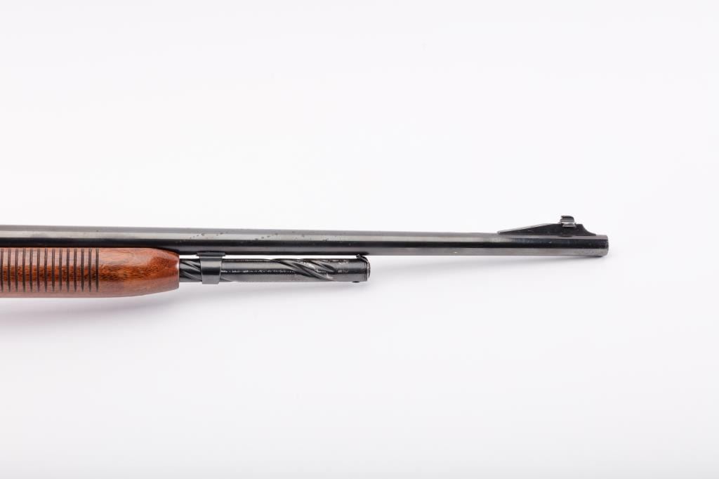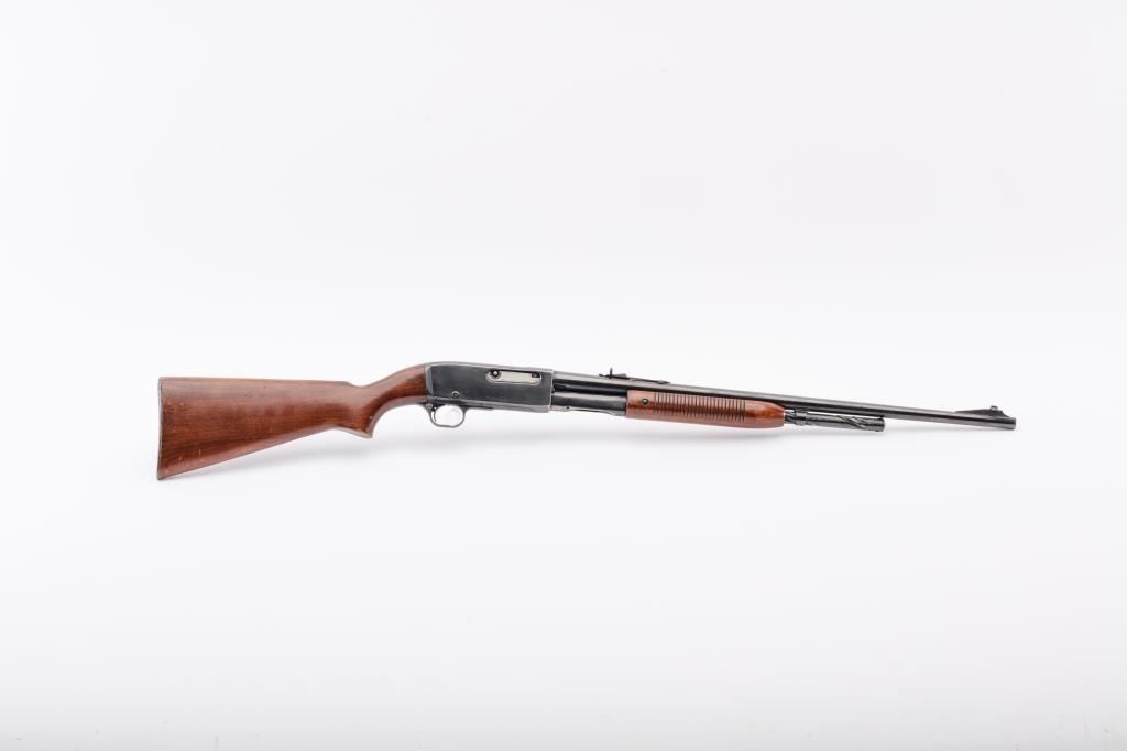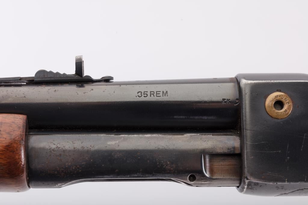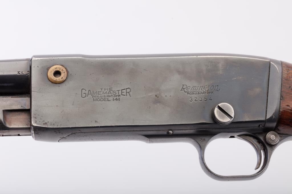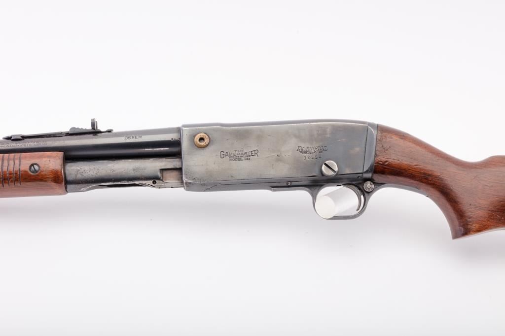 Remington Model 141 Gamemaster pump action rifle, .35 Rem. caliber, 24” barrel, re-blued finish, wood stocks, S/N 32354; overall good condition with majority of re-blued finish remaining, good bore, good action, goodmarkings and overall good wood stocks. (C&R). Est.: $300-$600.