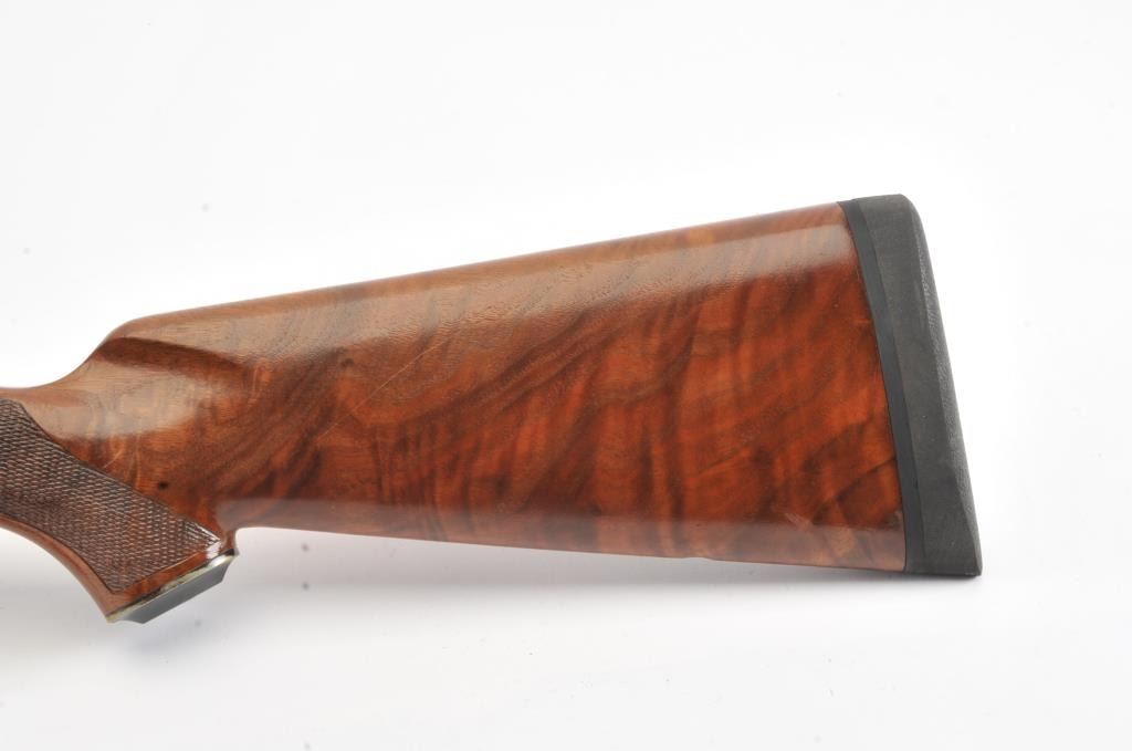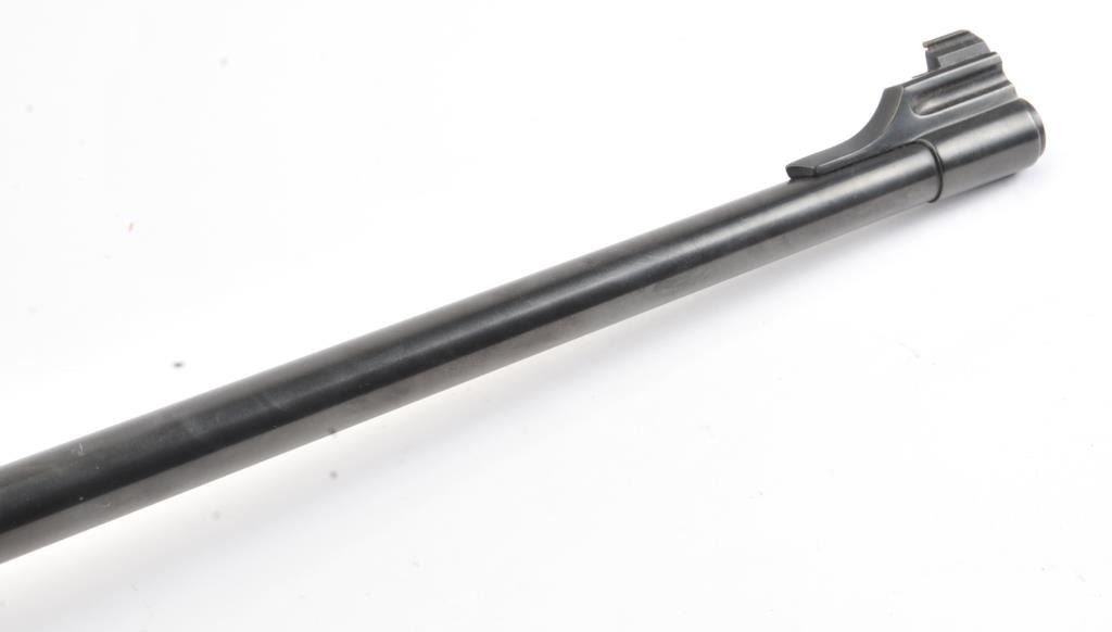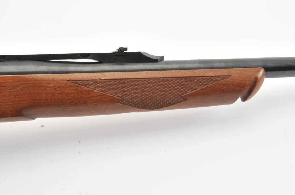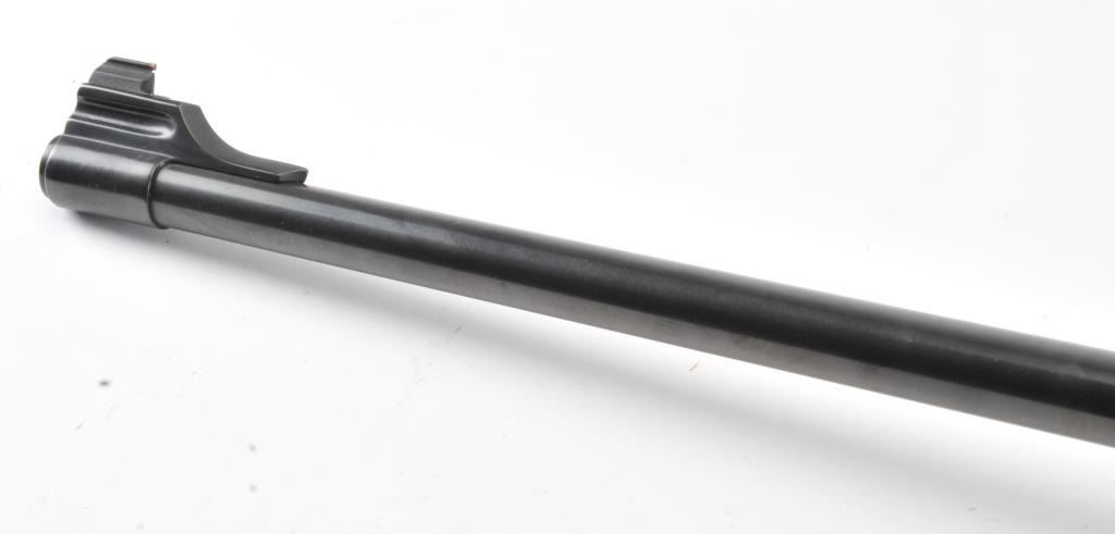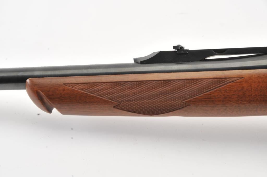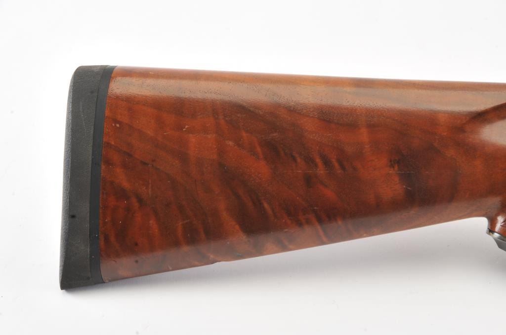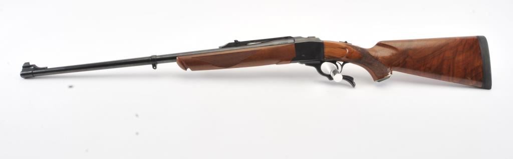 Ruger No.1 single shot rifle, .35 Whelen caliber, Serial #133-67336. The rifle is in fine overall condition with a 26” barrel with a ramped blade front and folding rear sights. The barrel and receiver retainnearly all of the original blue finish with a quarter rib added. The checkered Walnut stock is in very good condition with small mars from carry and use. The butt stock has been given an additional coat of varnish andends with a solid rubber recoil pad providing a 14” LOP. The bore is dirty and may clean to good. The action is crisp and the markings are sharp on this desirable Ruger in the venerable Whelen cartridge. Est.:$700-$1,400. (Modern).