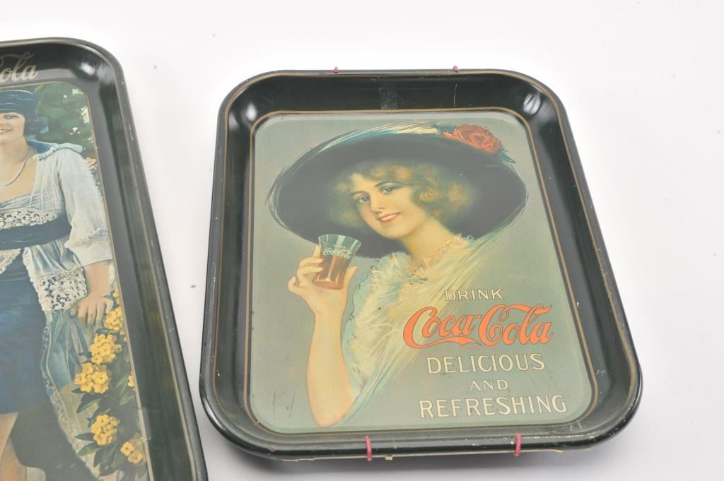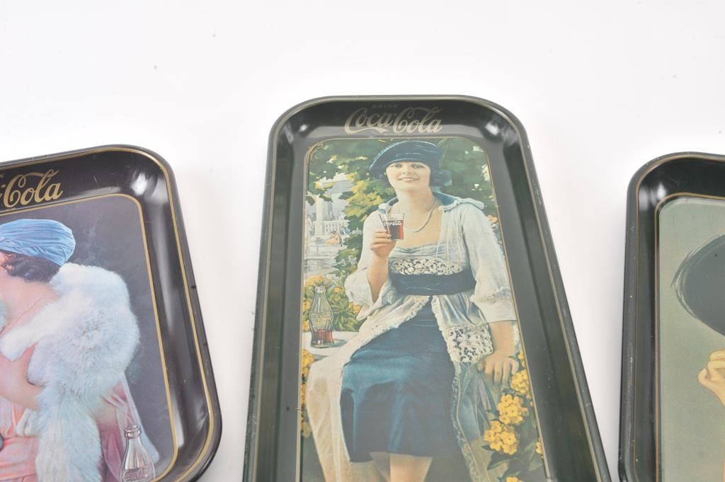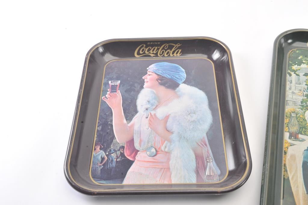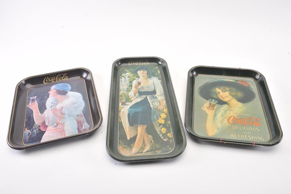 Lot of three reproduction Coca-Cola metal serving trays. The trays are all in very good condition depicting beautiful women enjoying a coke. Est.: $25-$50.