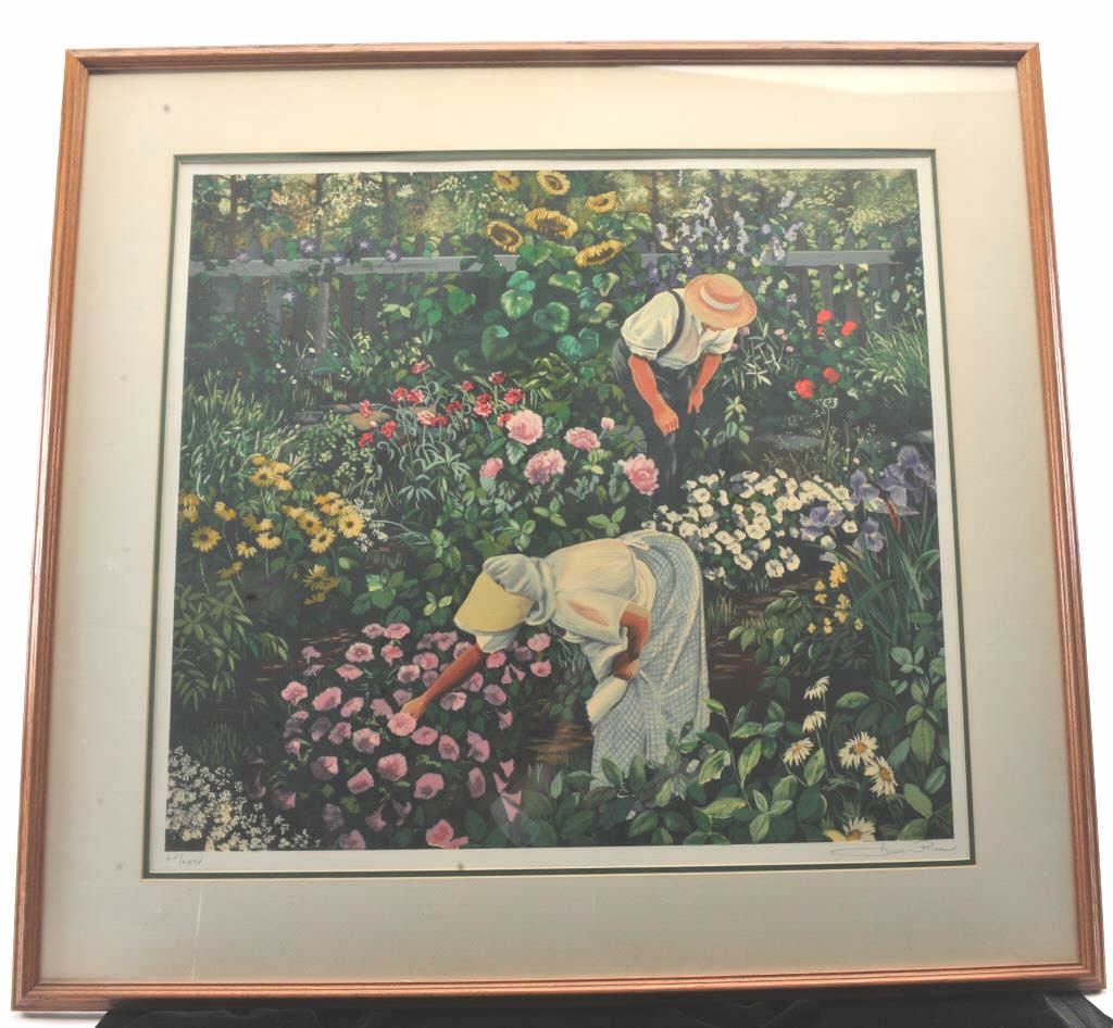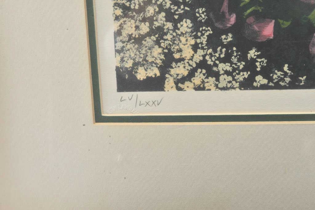Susan Rios signed and numbered serigraph titled, “Peaceful Hours”. The piece is 30” x 27” and is professionally matted and framed. The piece includes a certificate of authenticity with an appraised value of$2,200. The piece is signed at the base and numbered, LV of LXXV. The serigraph had a total production of 540 pieces and was produced by Studio Heinrici of New York in 1984 and retailed by Martin Lawrence LimitedEditions. Fresh from a local estate with a Certificate of Tirage attached. Est.: $250-$500.