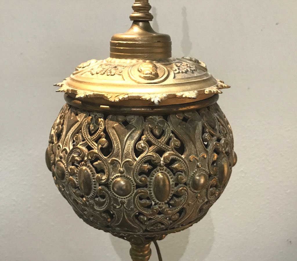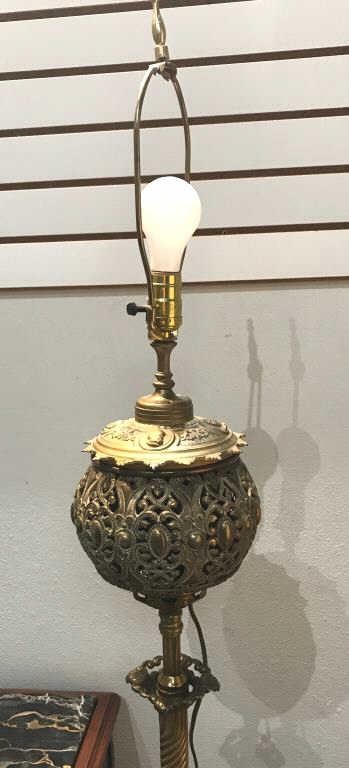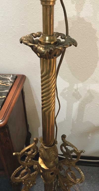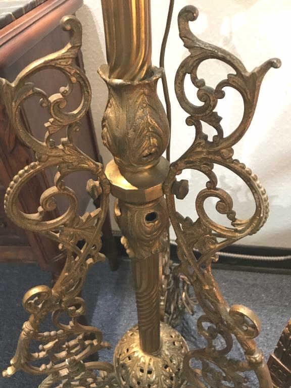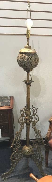 Ornate cast metal vintage-style electrified standing floor lamp (no shade); approximately 66” in height, working at time of description. Est.: $125-$250.