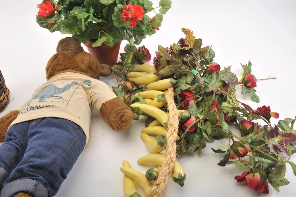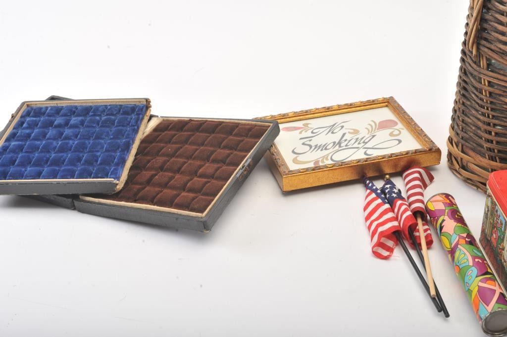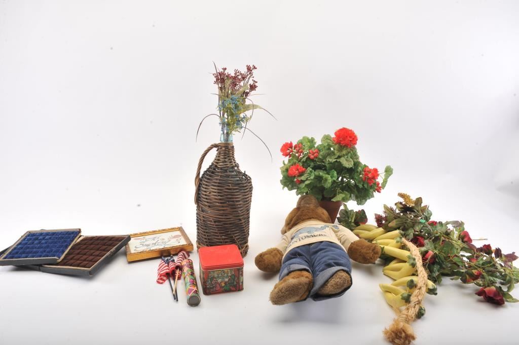 Large lot of Vintage decorating items including toys, flowers, baskets etc. Est:$100-200