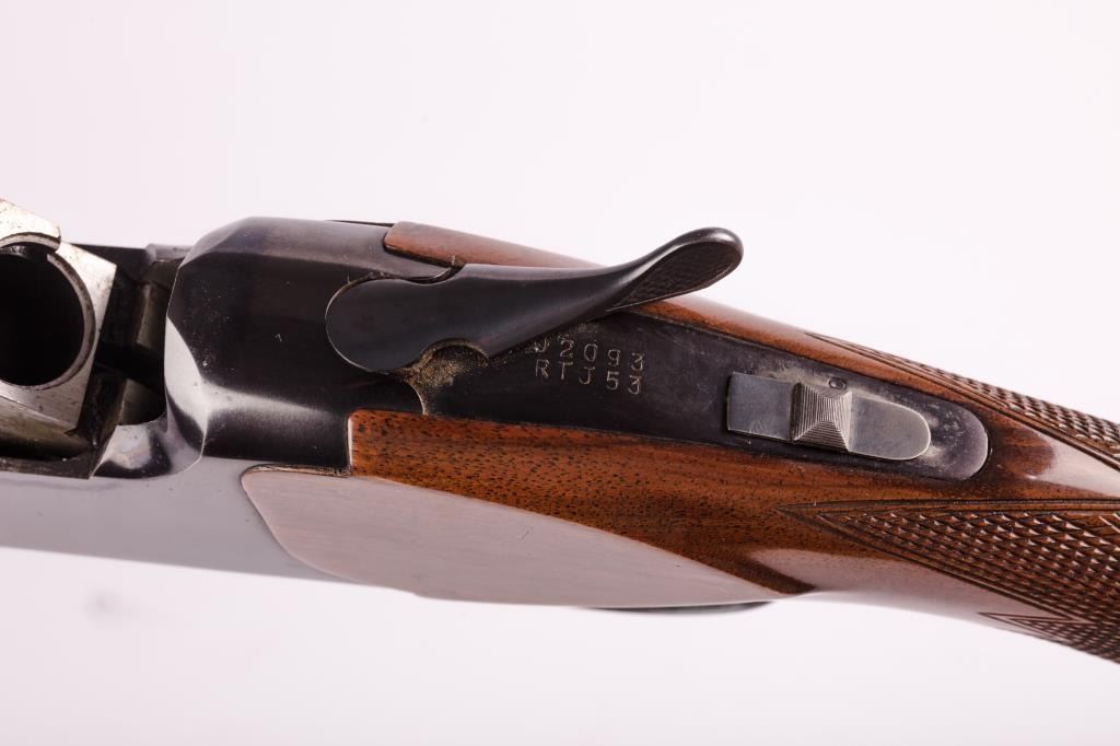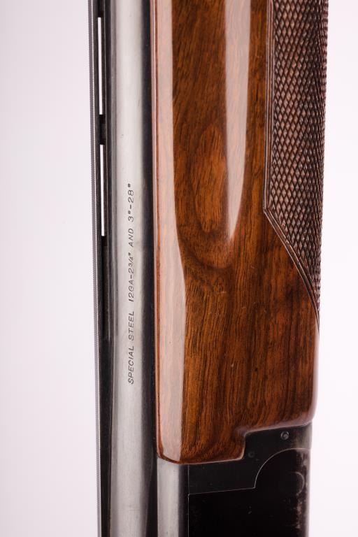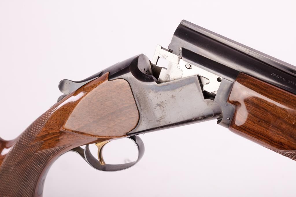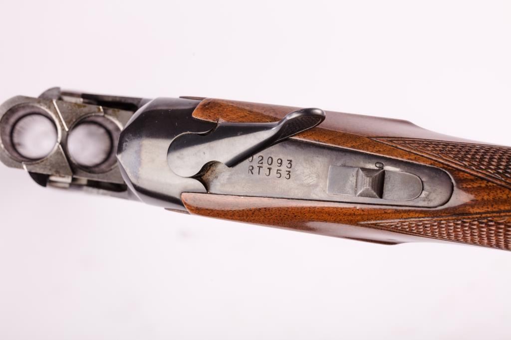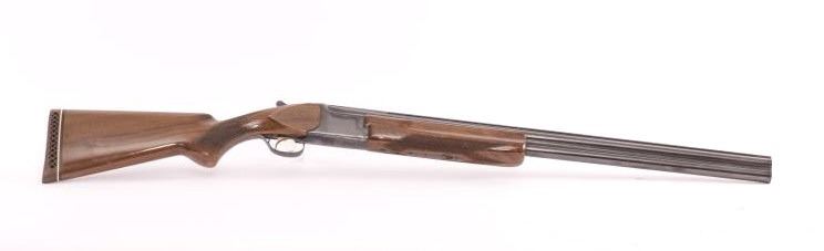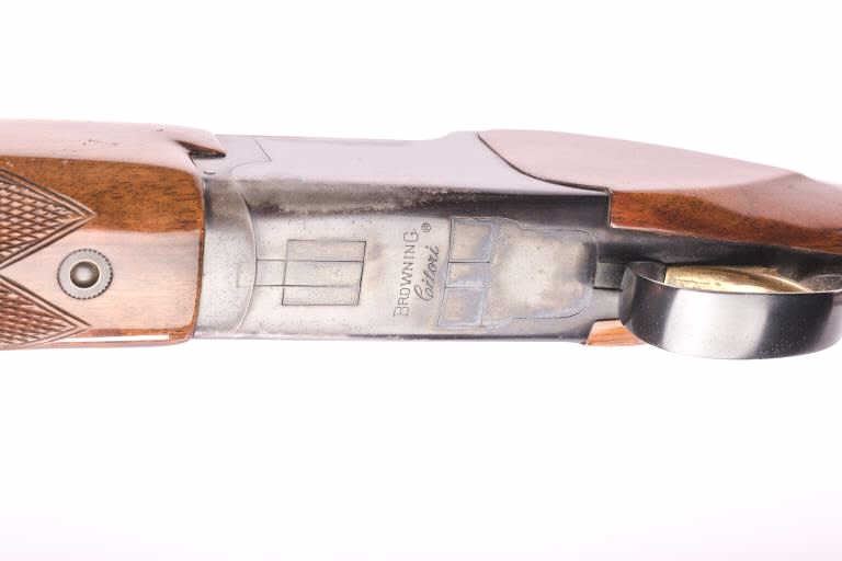 Browning Citori Over/Under shotgun, 12 gauge, Serial #02093-RTJ53. The shotgun is in good overall condition with 28” barrels with a full-length ventilated rib. The metal surfaces retain the majority of their bluefinish with wear at the muzzle and considerable wear on the underside of the receiver causing some loss of finish. The barrel is marked, “Special Steel” and will chamber 2 ¾” and 3” shells. The checkeredwood stocks are in good condition with mars and compressions consistent with field use. The buttstock ends with a ventilated rubber Browning marked pad providing a 14 ½” LOP to a single gold trigger. The bores are good,the action is crisp and the markings are sharp. Est.: $300-600 (Modern).