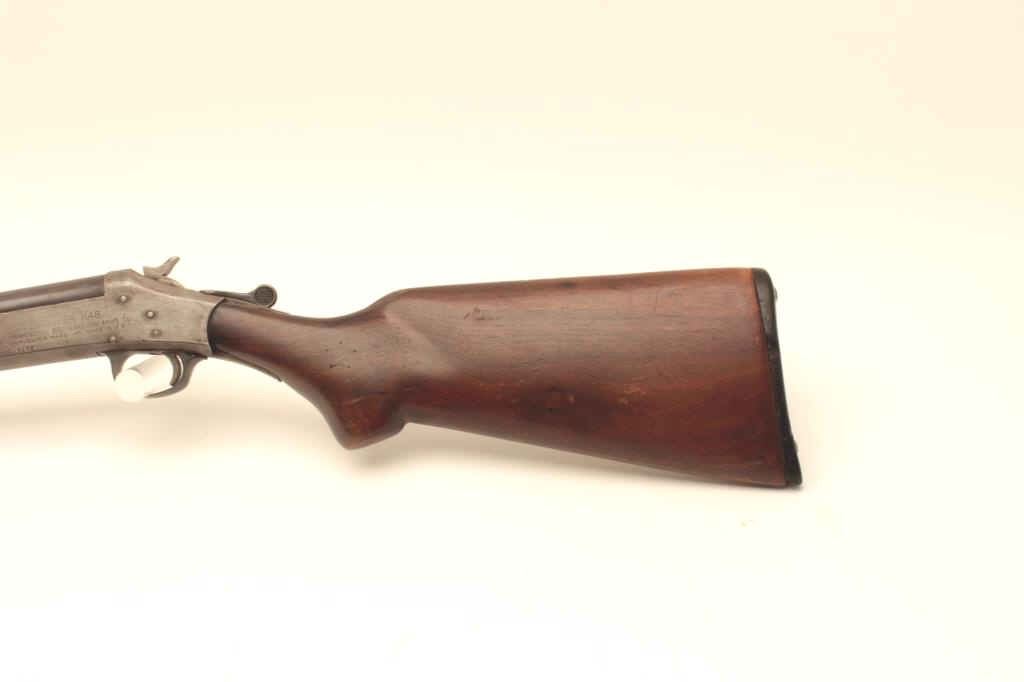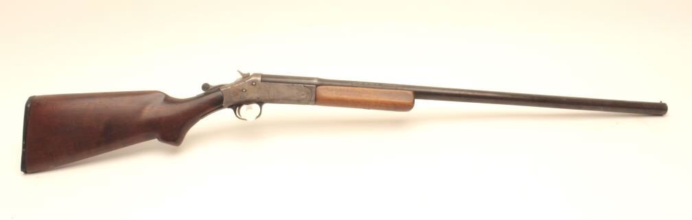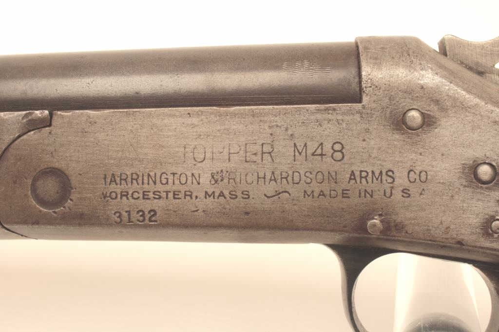 Topper M48 12GA Single Shot Shotgun, S/N 3132. Measures 43” overall with a 27 ¾” barrel. Fair condition. The butt stock has losses and refinished. Working and locks tight. Choked full. Est.: $50-100