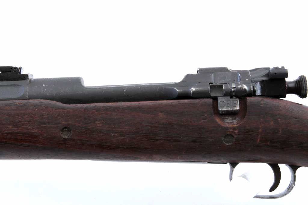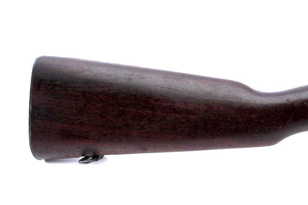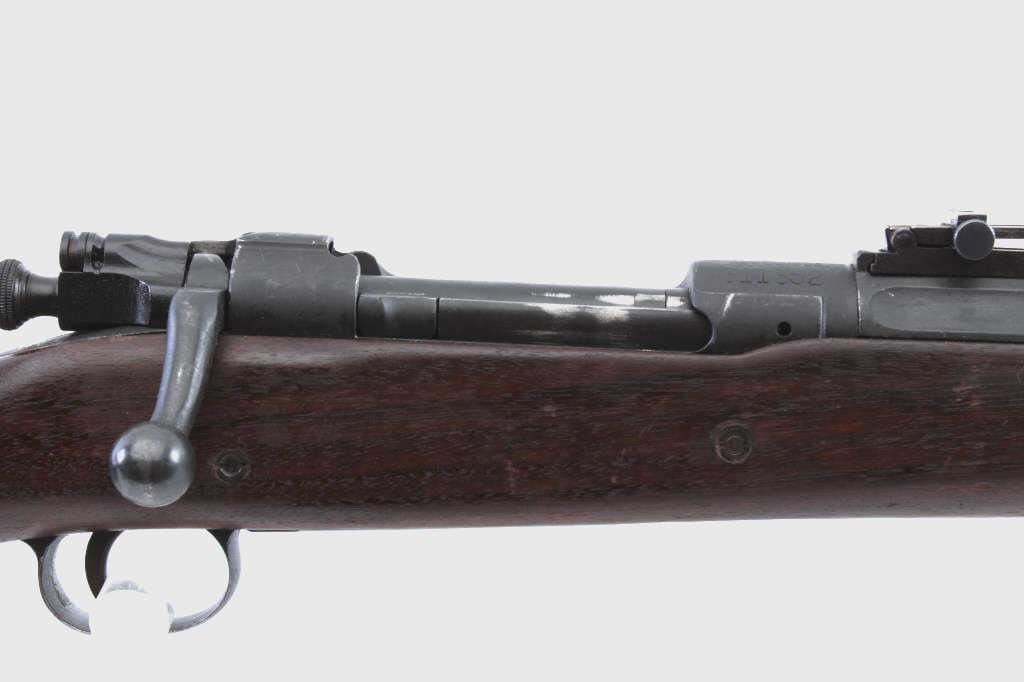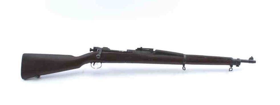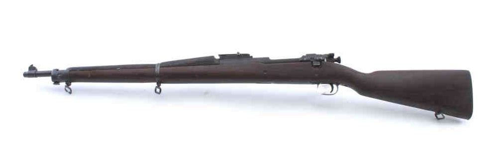 U.S. Model 1903 bolt action rifle by Rock Island Arsenal, .30-06 caliber, 24” barrel marked “H. S. 7-44”, military finish, wood stock with “T/n” on underside of butt stock and “R” stamped on top of butt stock; overall good condition showing majority of military finish to metal surfaces, sharp markings, good bore, crisp action; stock shows scattered mars and scratches including an approximate 2” of wear/scratching tounderside of stock in front of barrel band. (C&R). Est.: $350-$700.