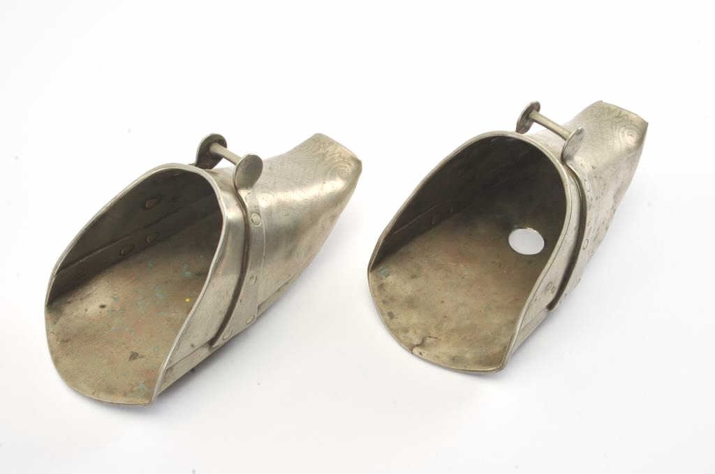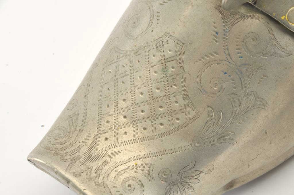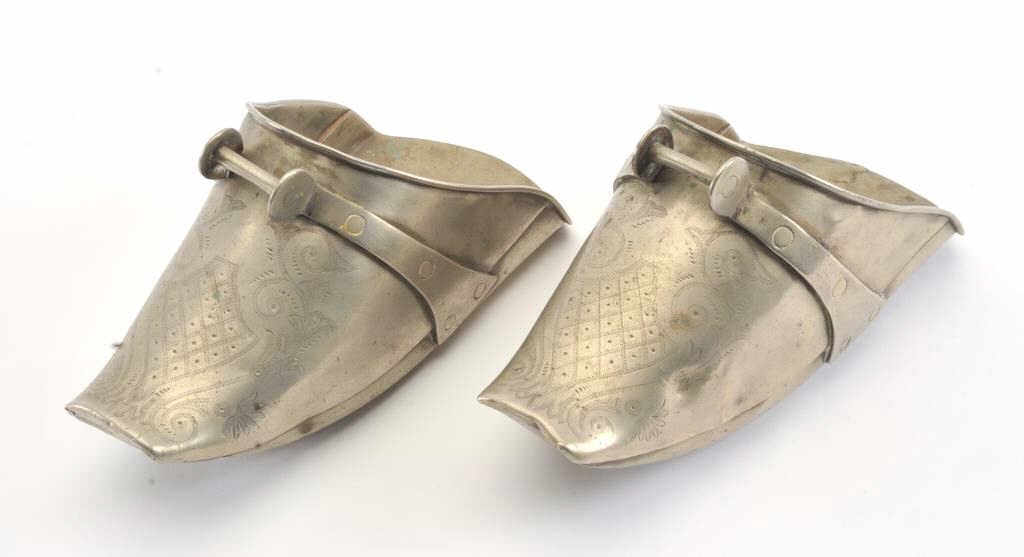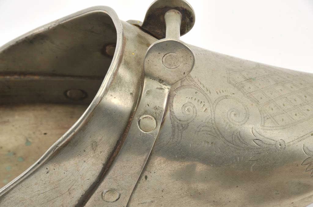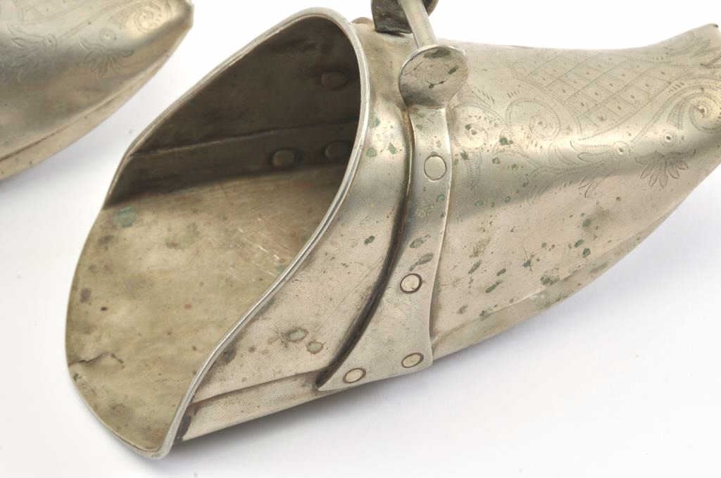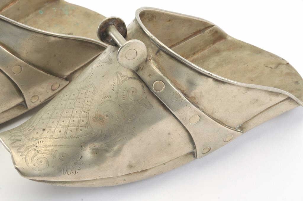 Pair of petosi silver Spanish style spurs (Nickel alloy) engraved. Maker marked “Machado Soares” and “Petosi Silver”. 19th century. Est.: $150-300