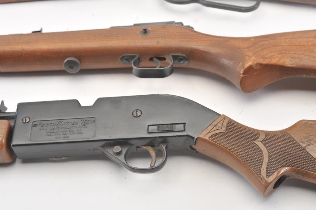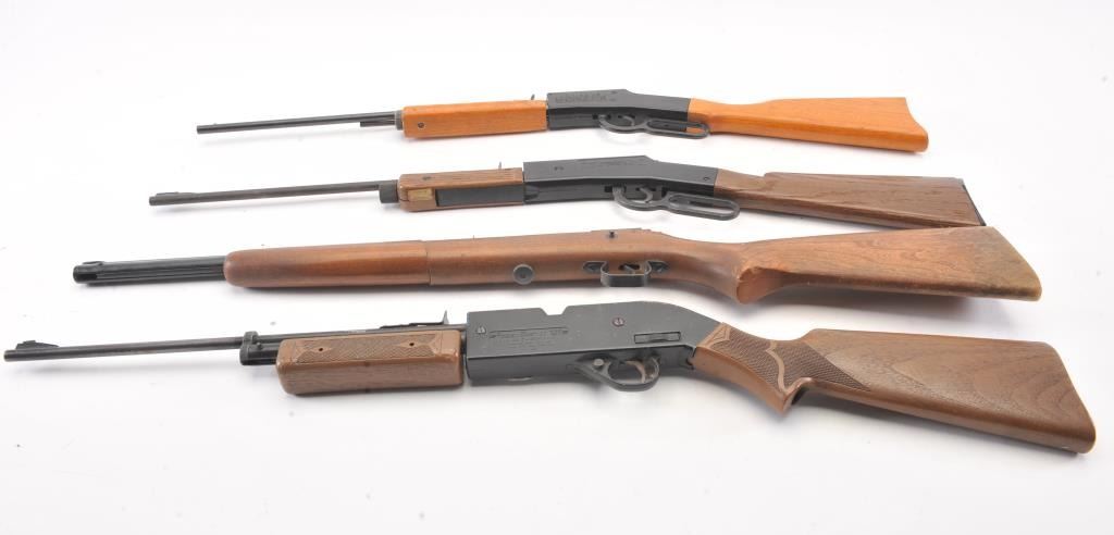 BB gun lot of four BB rifles. The lot includes a Crosman Model 147 .177 caliber pump rifle, a Crosman Model 73 C02 lever action rifle, JC Higgins BB repeating rifle and a Crosman Power Master 760 pump rifle.All four are in good overall condition. Est.: $50-$100.