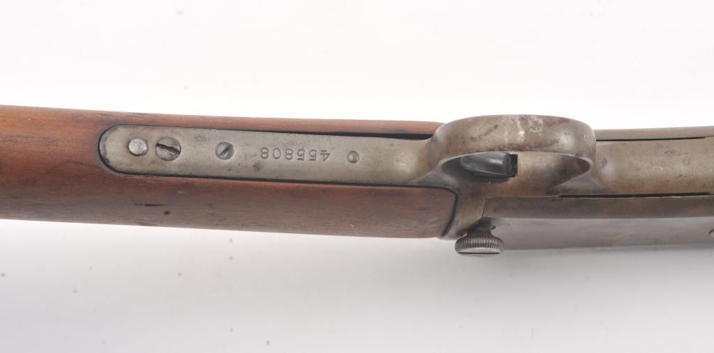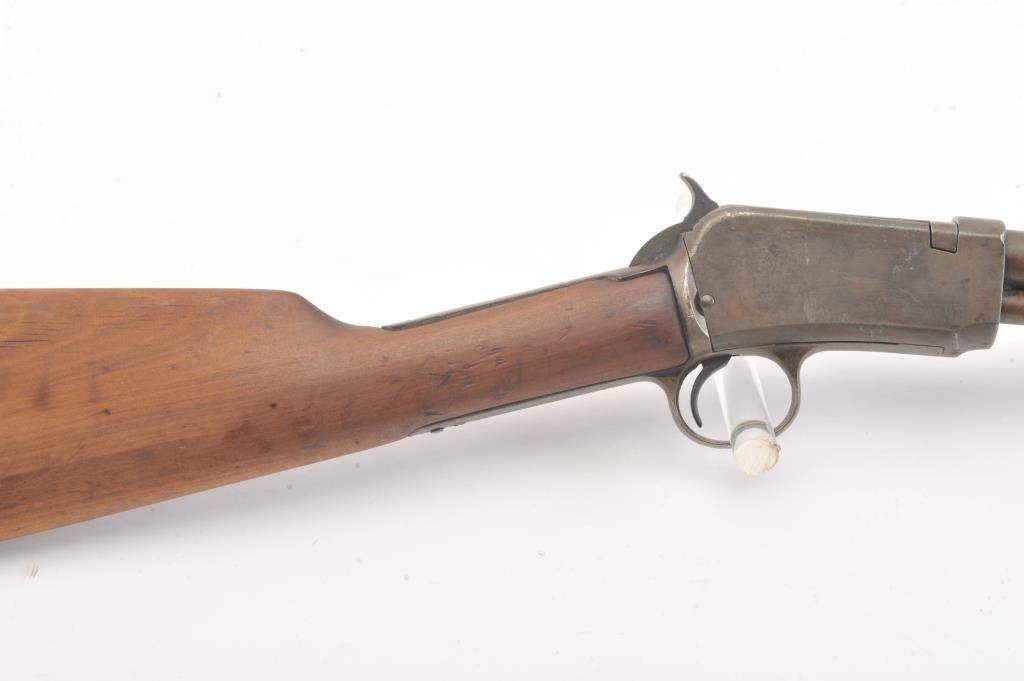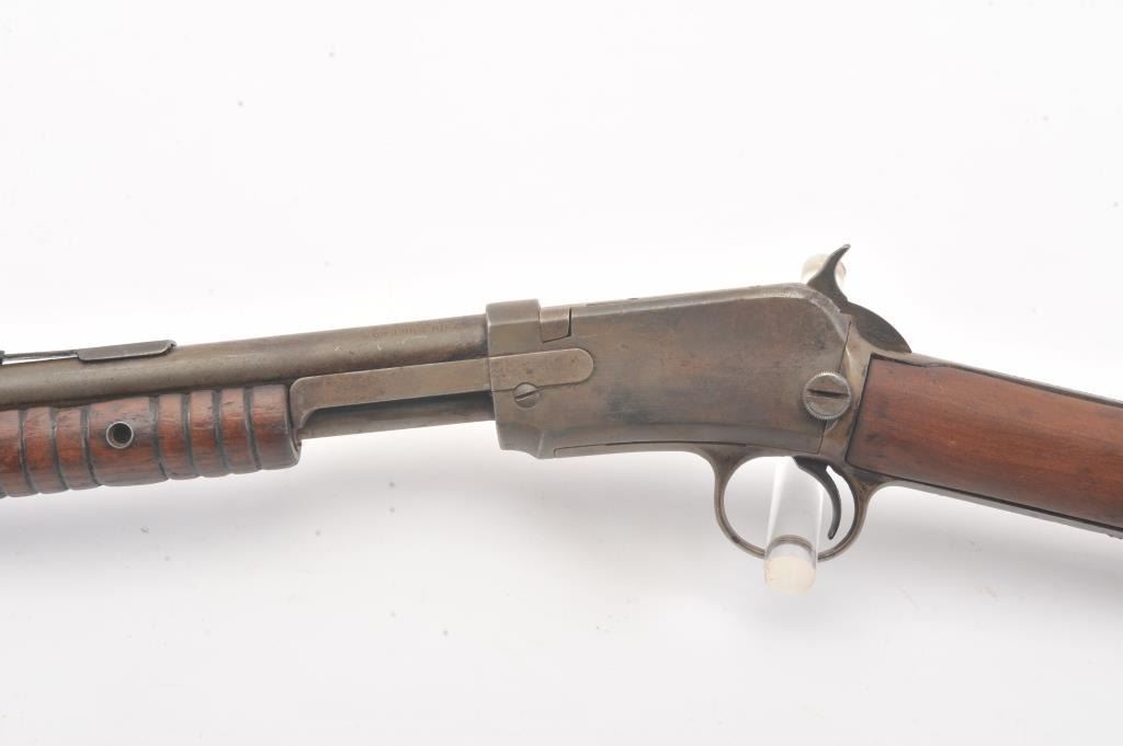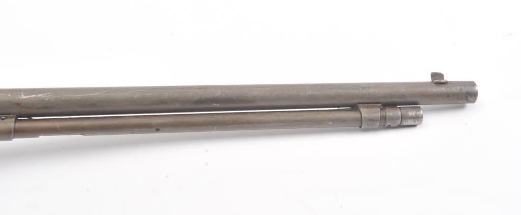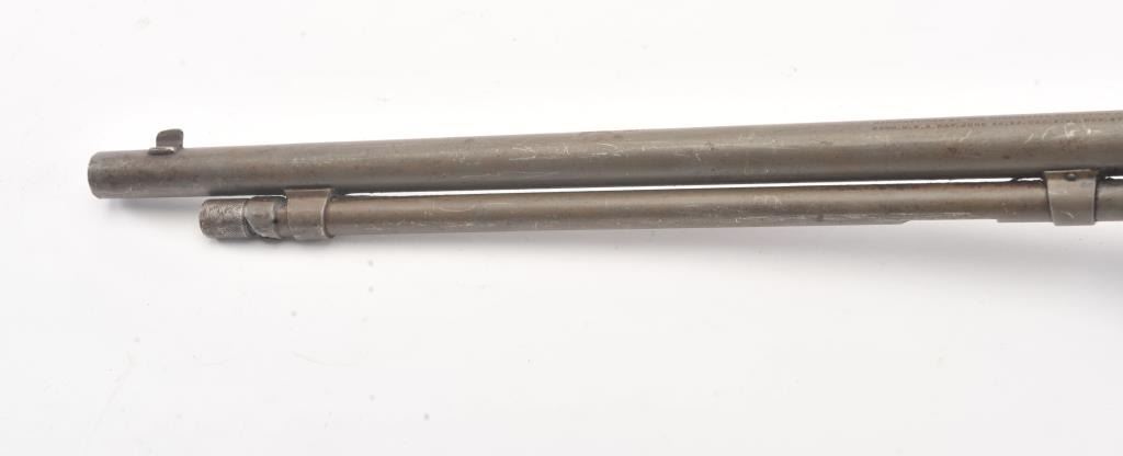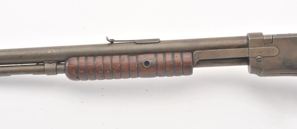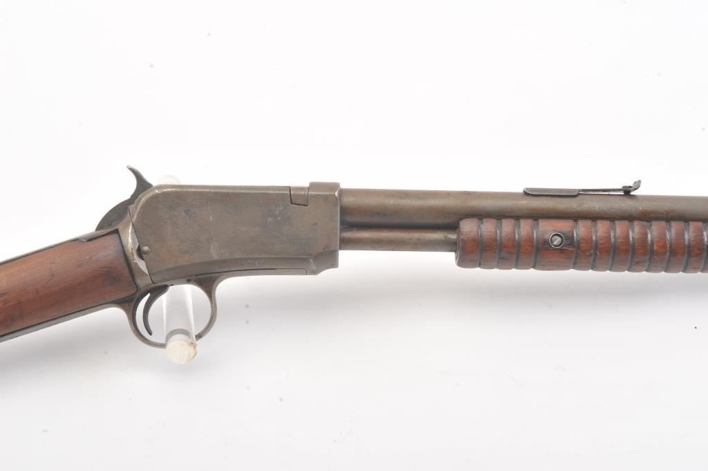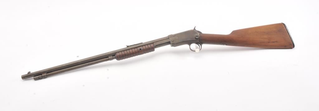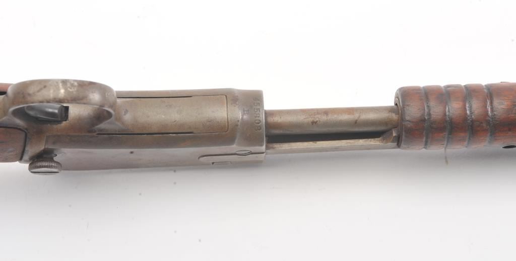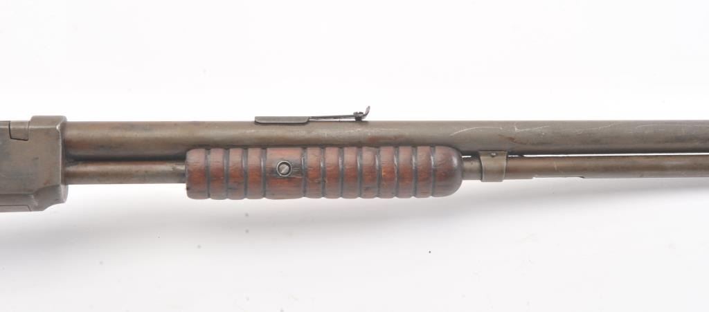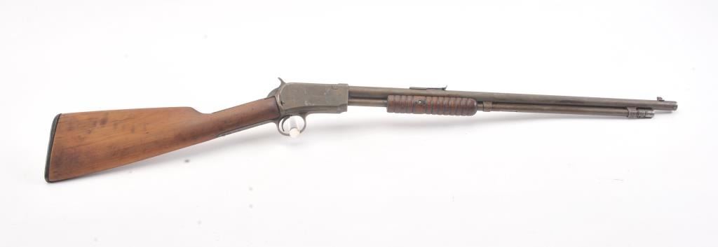 Winchester Model 1906 .22 S., L., L.R. pump action rifle, S/N 455808. Fair to good condition with brown patina and sanded stock, and the action is good and the bore if fair to rough but may clean. (C&R) Est.: $150-$300