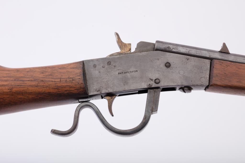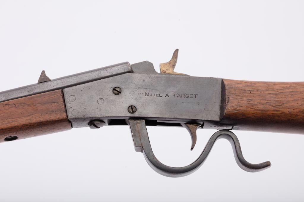 Page-Lewis Model A Target .22 Single Shot falling block boy’s rifle. Very good plus condition with 80%-90% toning blue and case colors. The stock is also good to very good with minor scratches, bumps and wear. Theaction is tight and the bore is very good. Scarce. (C&R) Est.: $175-$350