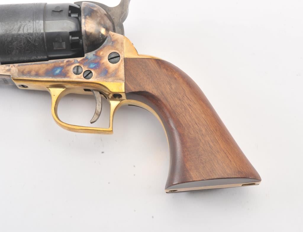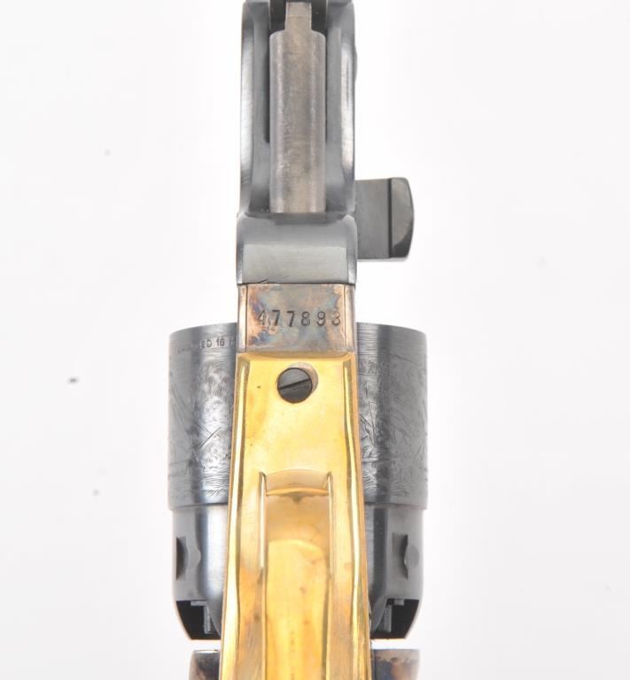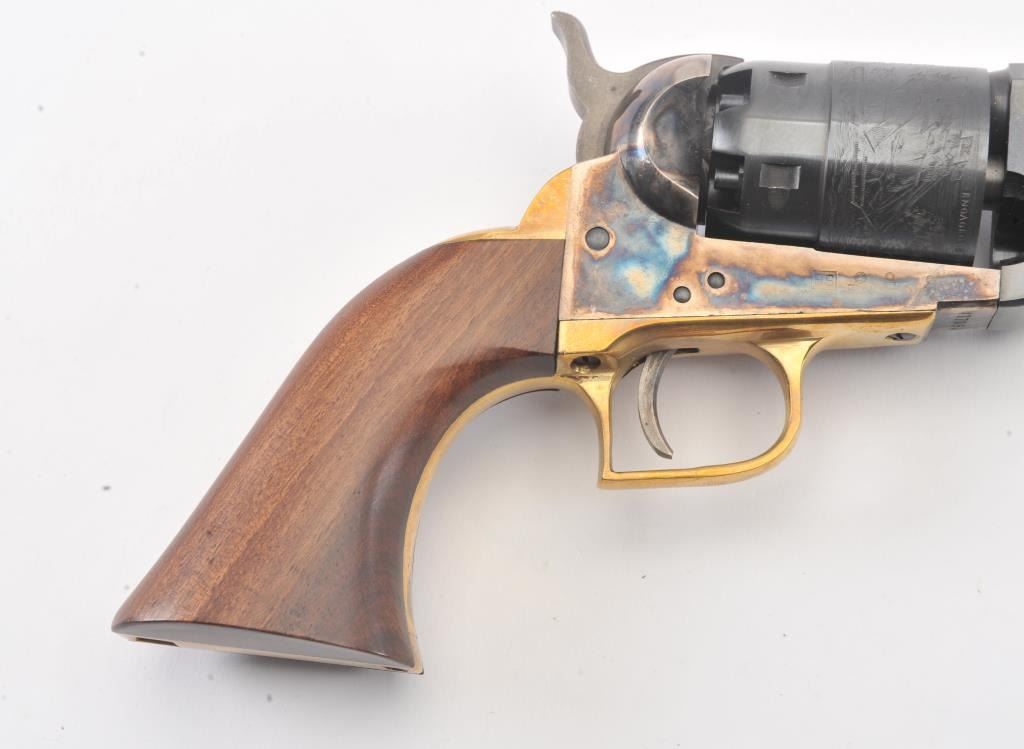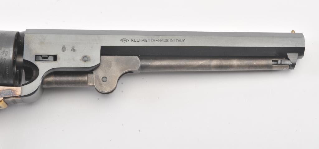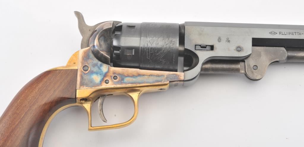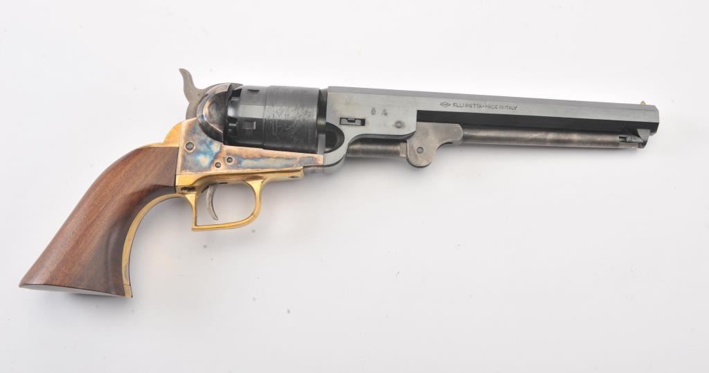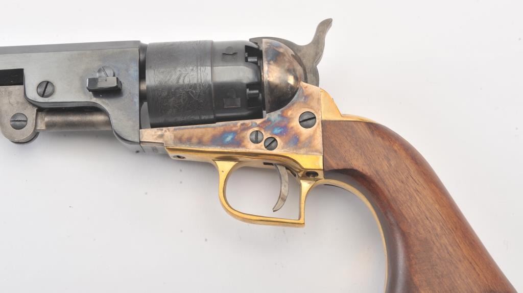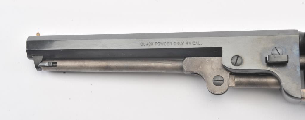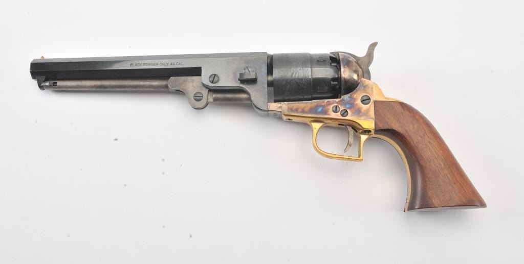 Italian copy of a Model 1851 Navy percussion revolver, .44 caliber blackpowder, 7.5” octagon barrel, blued and case hardened finish, smooth wood grips, S/N 477893; near new condition. (Percussion). Est.: $125-$250.