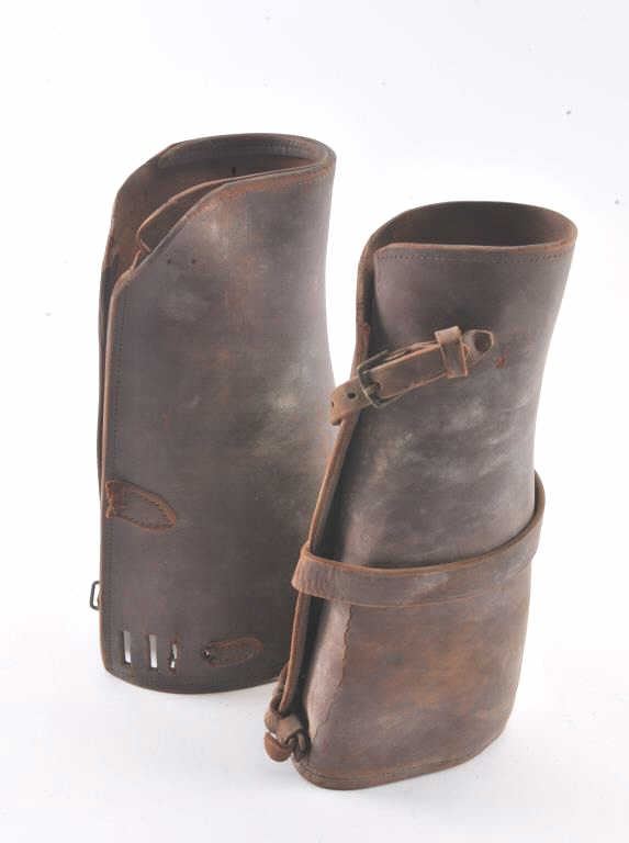 Pair of military leather leggings; some damage to several straps. Est.: $25-$50.