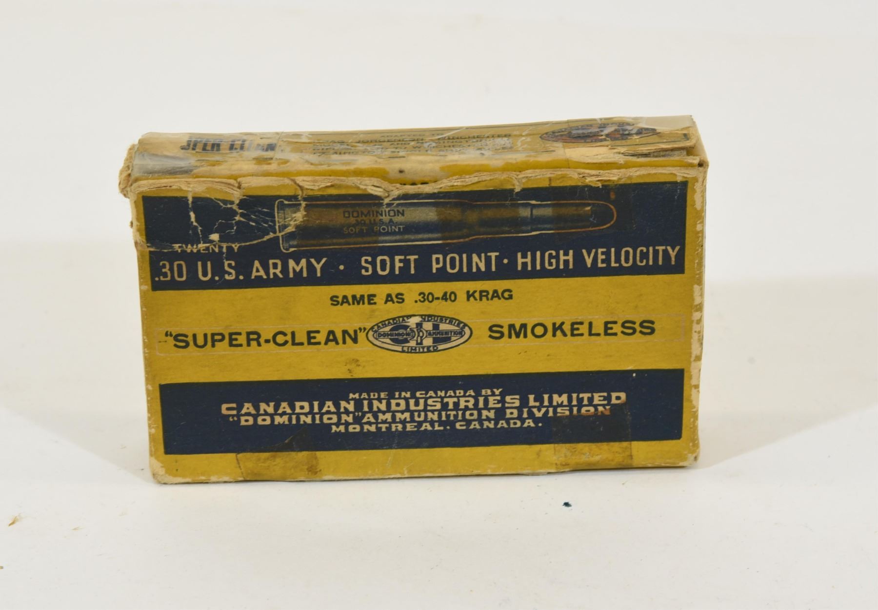 Original box which is tattered at opening. Same as 30-40 Krag.