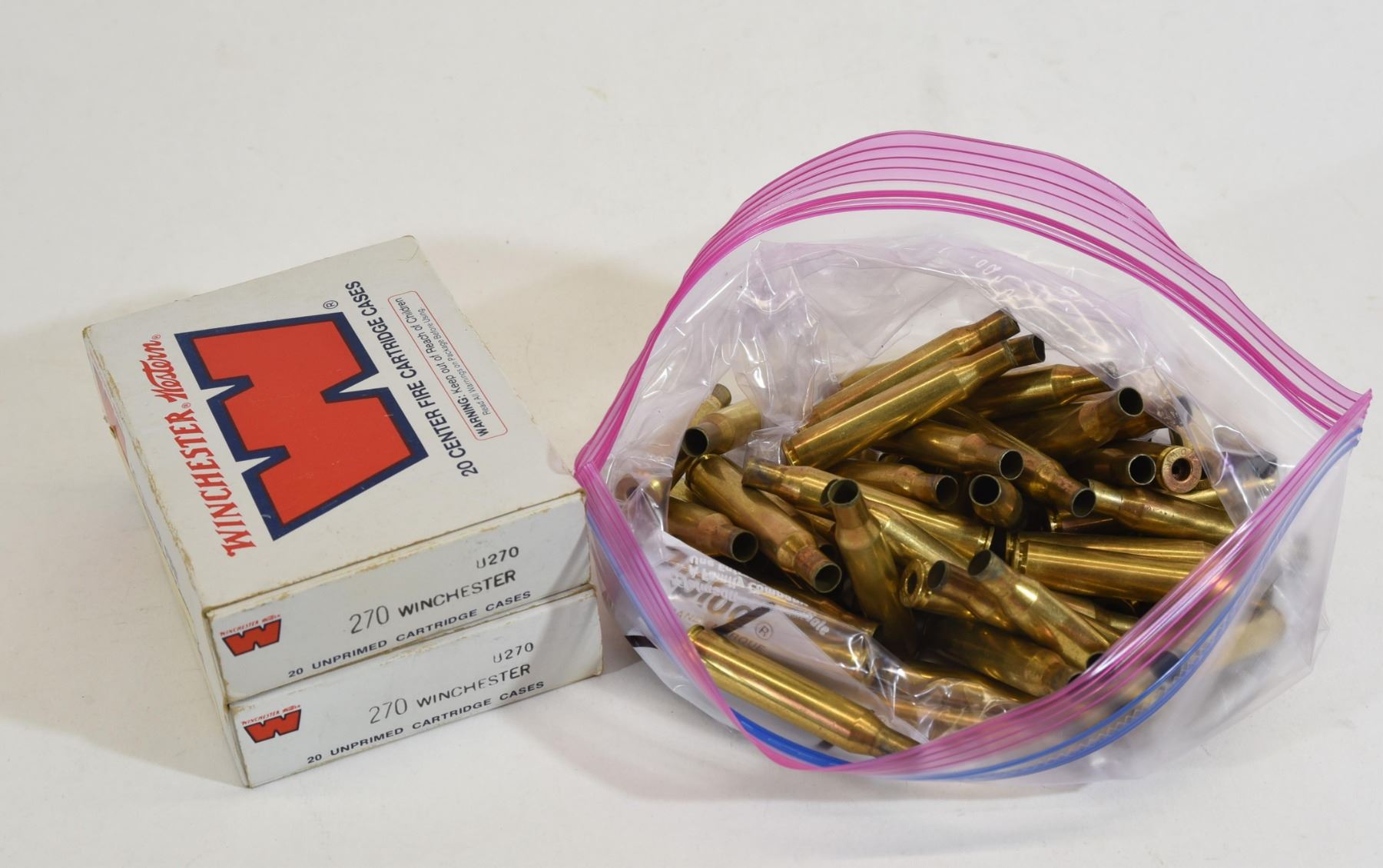 1) 54 pieces once fired unprimed brass. 2) 40 pieces fired brass.