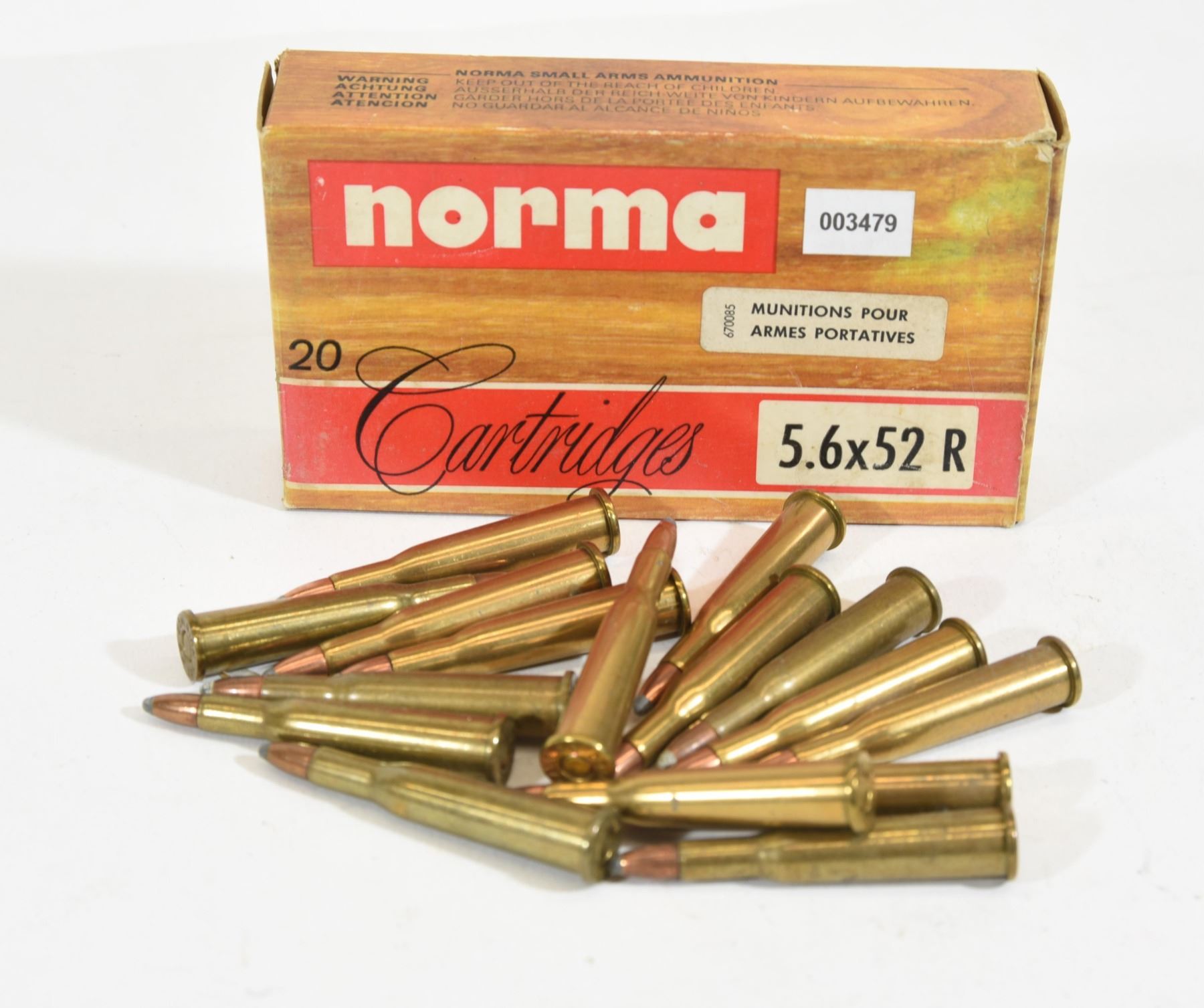20 rounds Norma (5.6 x 52R) and 16 rounds Dominion.
