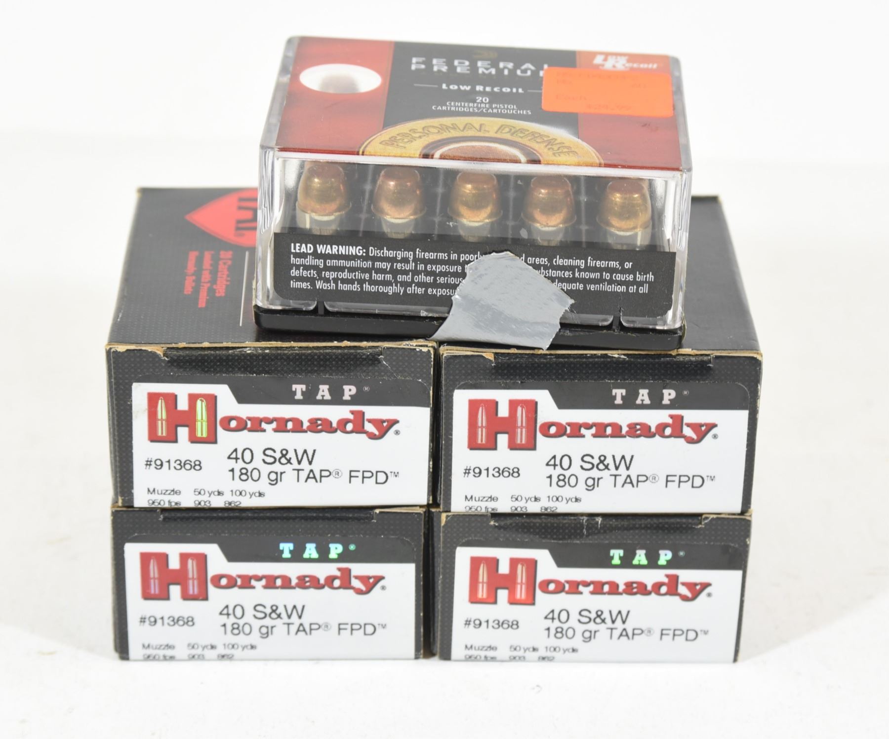1) 100 rounds Hornady 180gr TAP FPD. 2) 25 rounds Federal 135gr low recoil.