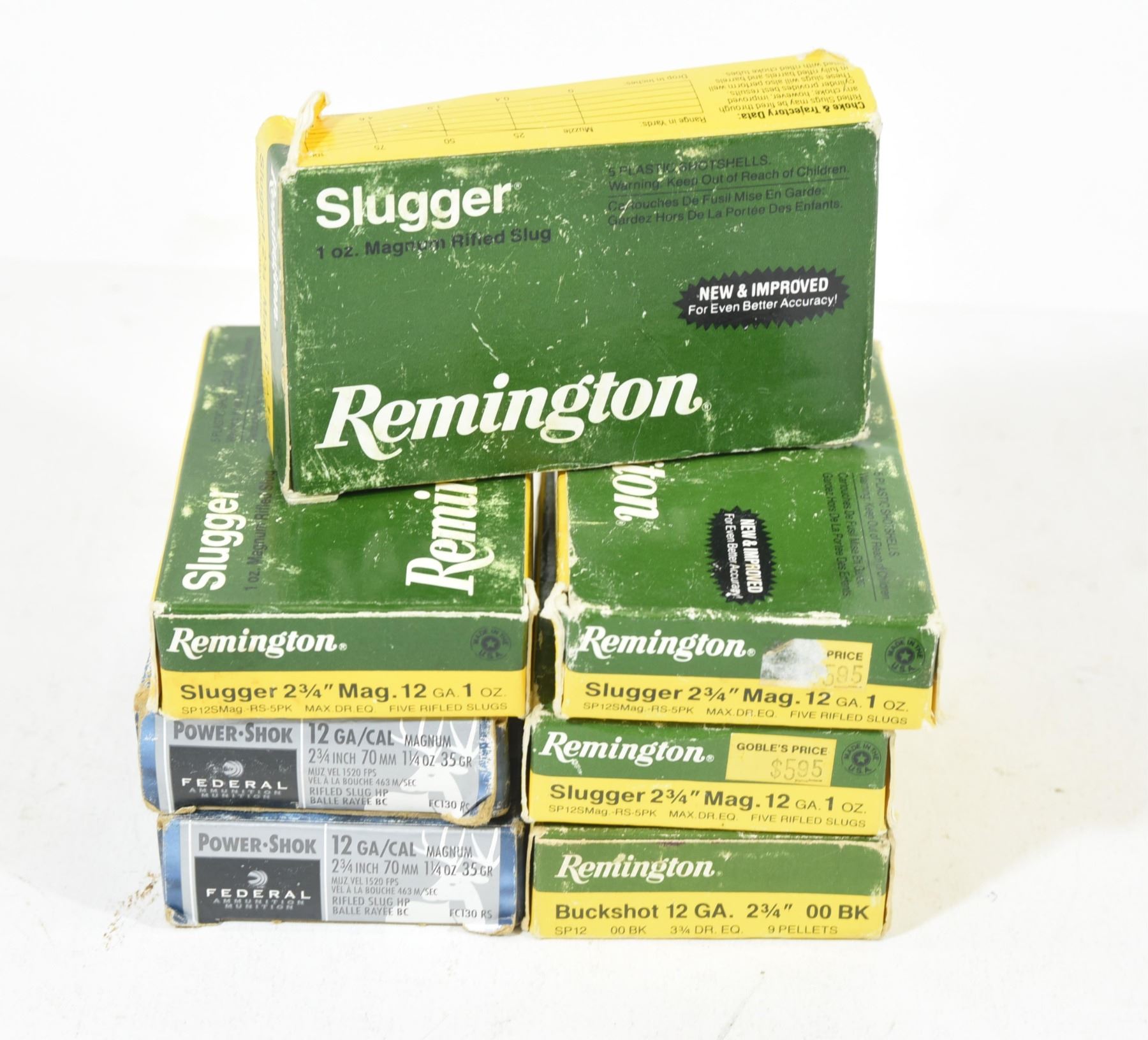 20 rounds Remington slugs, 5 rounds Remington 00BK, 10 rounds Federal slugs.