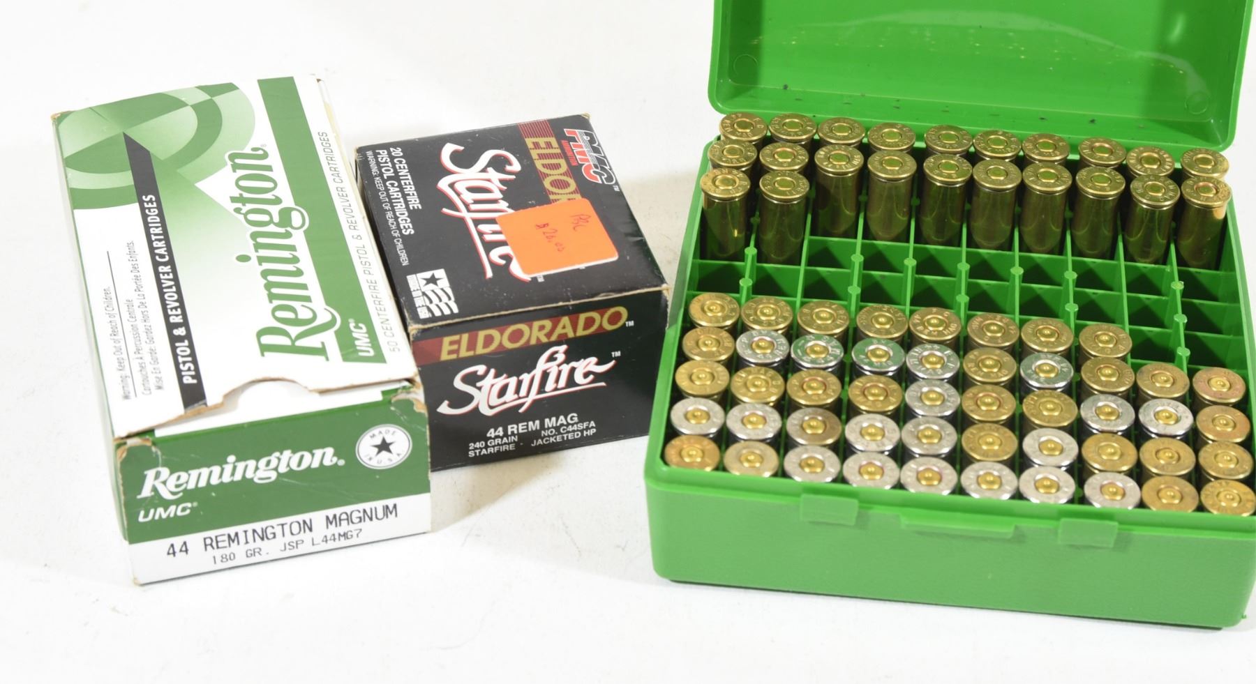 1) 50 rounds Remington 180gr JSP. 2) 25 rounds PMC 240 JHP. 3) 22 rounds Reloaded.
