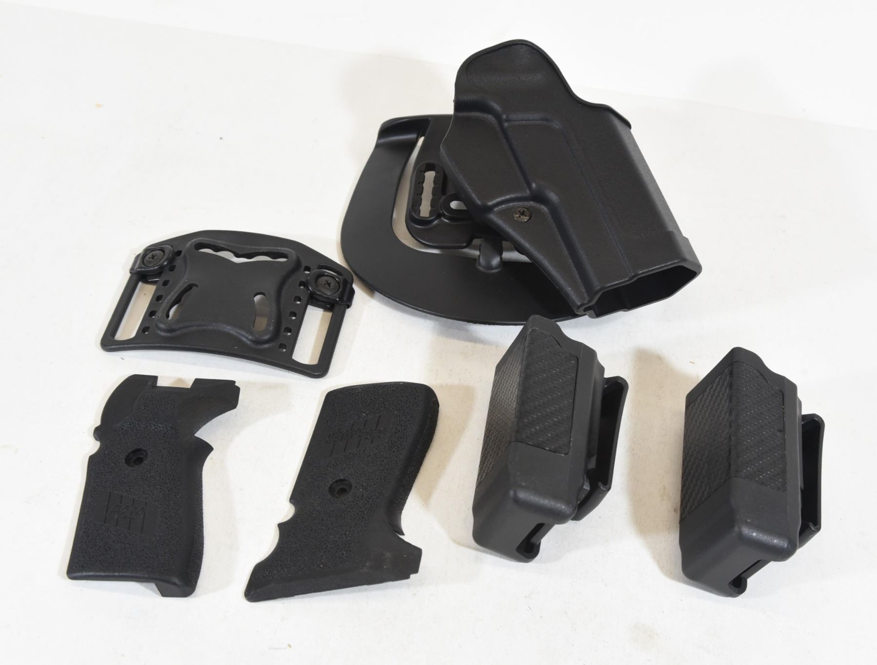 Fits Sig228/229. Comes with 2 mag pouches, spare belt loop mount and Sig 239 grips.