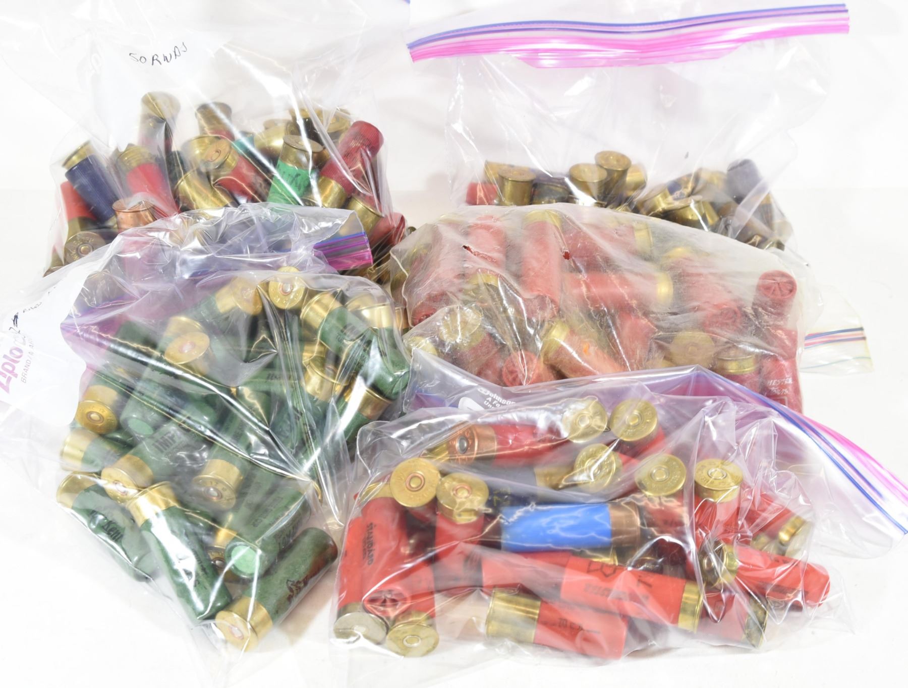 A mix of plastic and paper, different manufacturers and shot size.