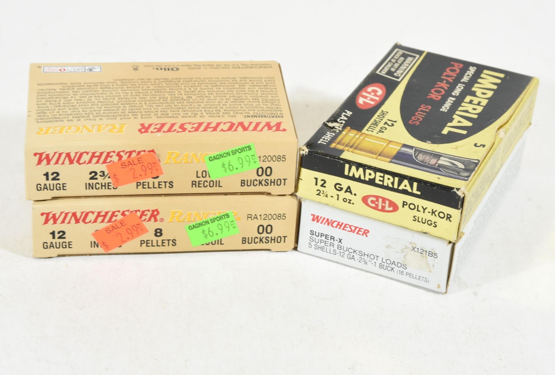 1) Winchester #00 Buckshot 8 pellets. 2) Imperial 1oz Slug. 3) Winchester #1 Buckshot 16 pellets.