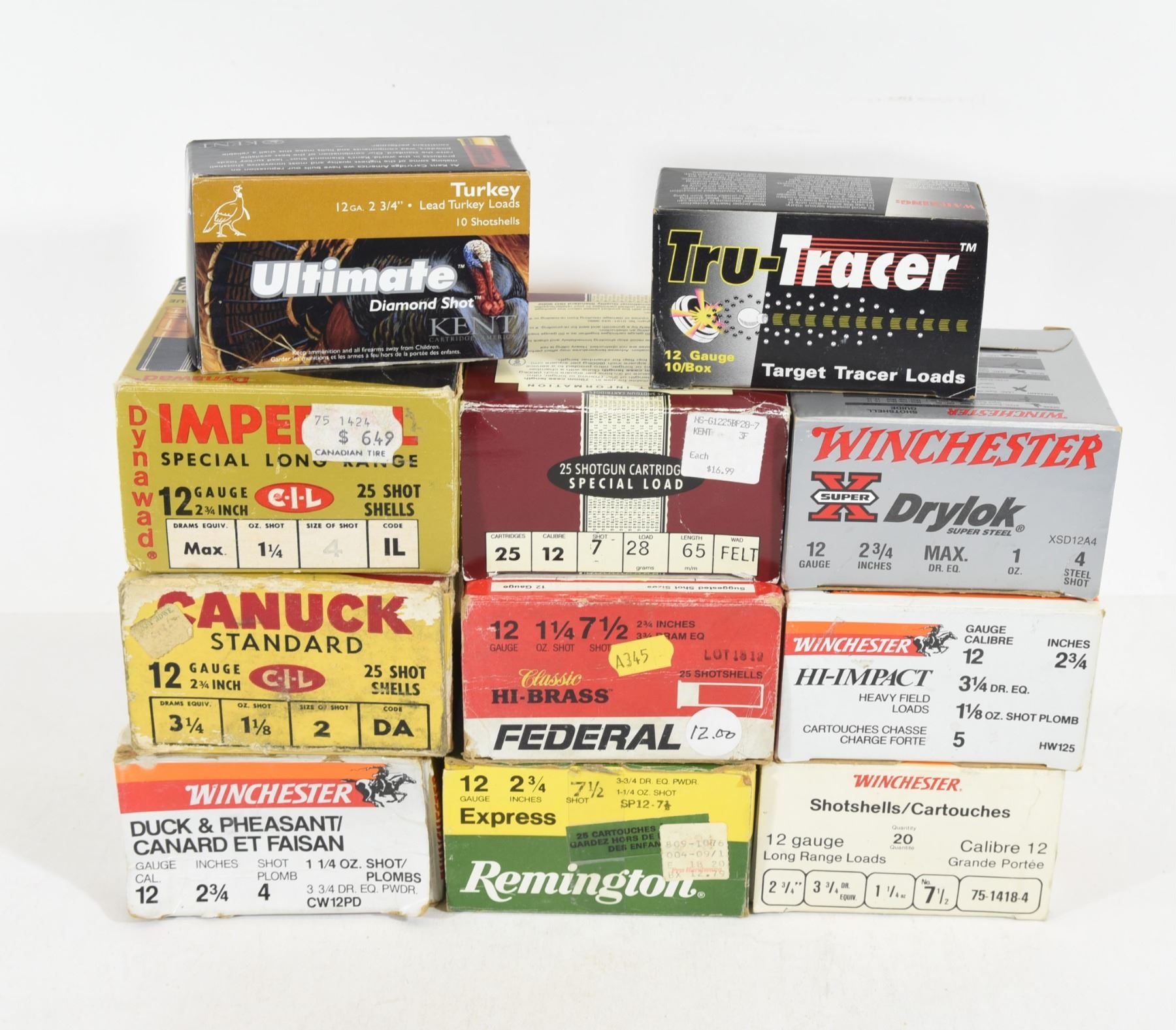 A mix of different manufacturers and shot size, all lead, box does not necessarily contain ammunition stated on the box.