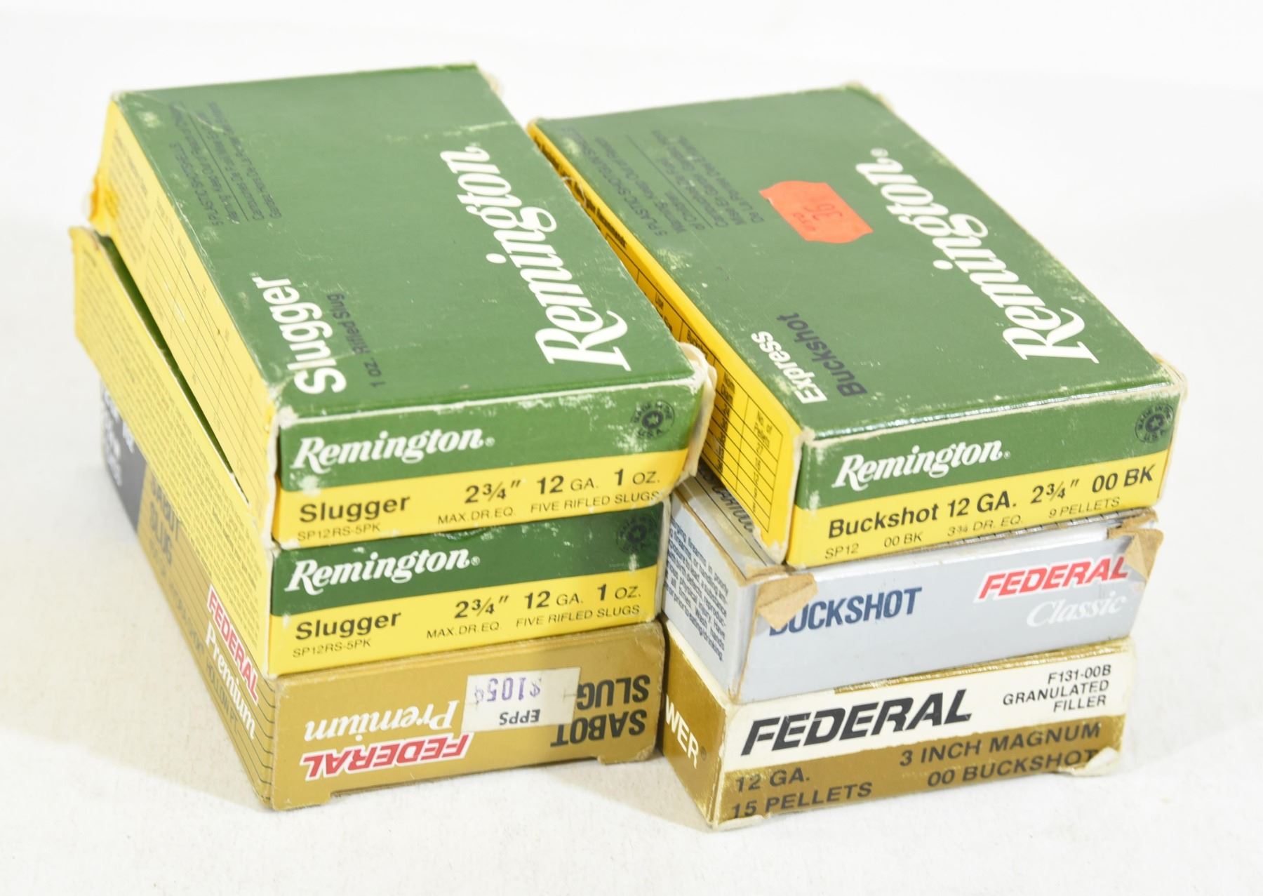 1) 5 rounds Federal 2 3/4" 1oz Sabot Slug. 2) 10 rounds Remington 2 3/4" 1oz Slugger. 3) 5 rounds Remington 2 3/4" #00 BK. 4) 10 rounds Federal 3" #00 BK.