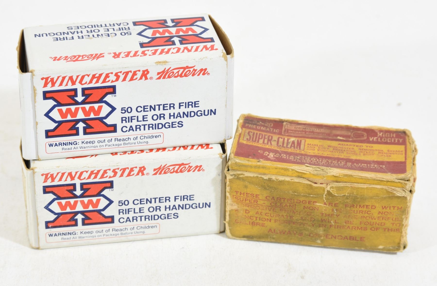 1) 100 rounds Winchester 100 grain lead rifle or handgun cartridges. 2) 19 rounds vintage C-I-L super-clean 80 grain.