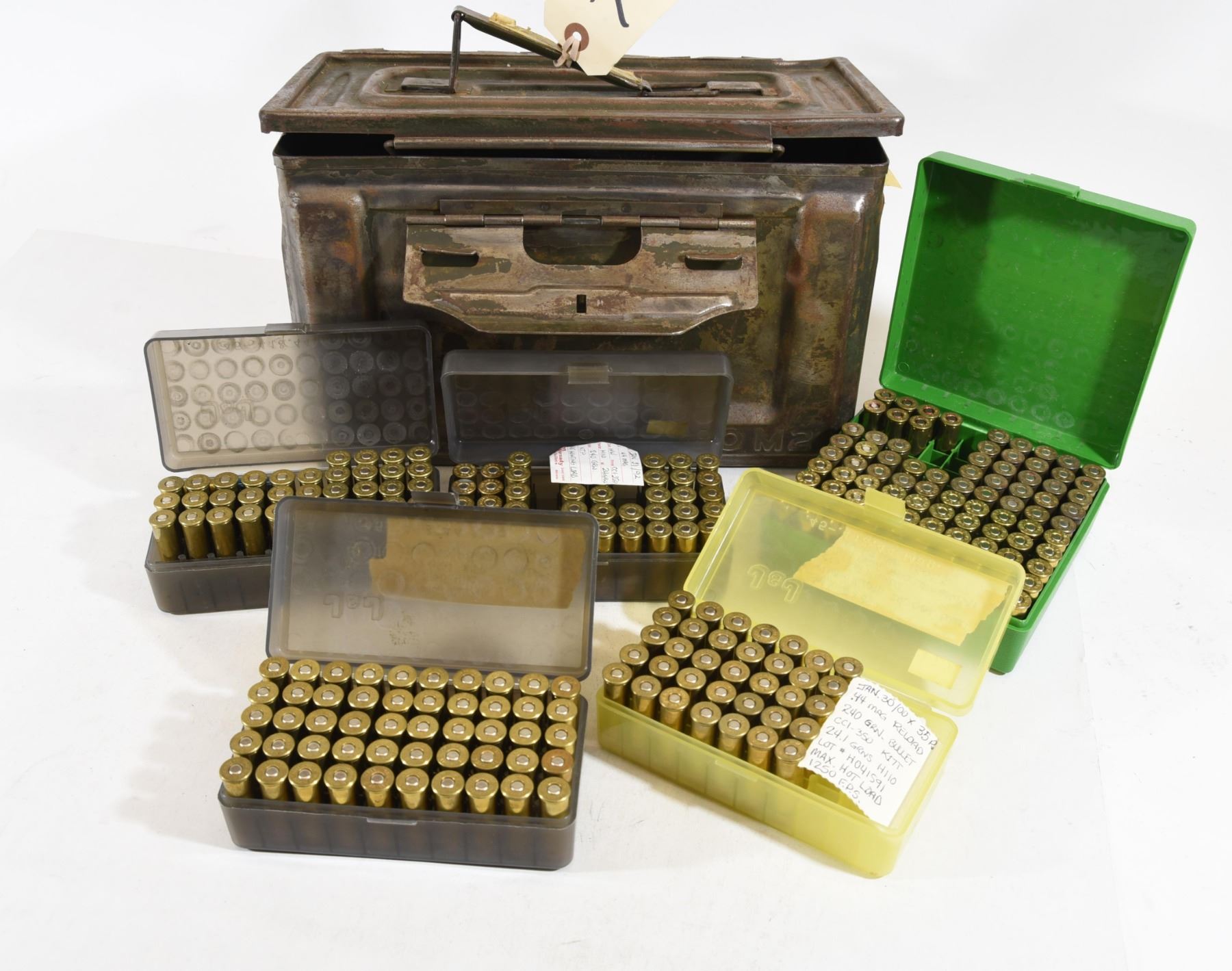 Comes in a metal ammunition can. 1) 90 rounds mixed new and reloaded. 2) 35 rounds 240gr reloads. 3) 50 rounds 240gr Hornady XTP HP reloads. 4) 41 rounds reloads. 5) 35 rounds CCI shot.