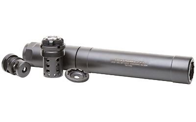 Griffin Armament, Optimus, Modular Suppressor, All rimfire, 9mm (short config. only),5.56, 300 Win, Black Finish, Stainless Construction, Includes Booster Assembly, Taper Mount, Taper Ext, Caps