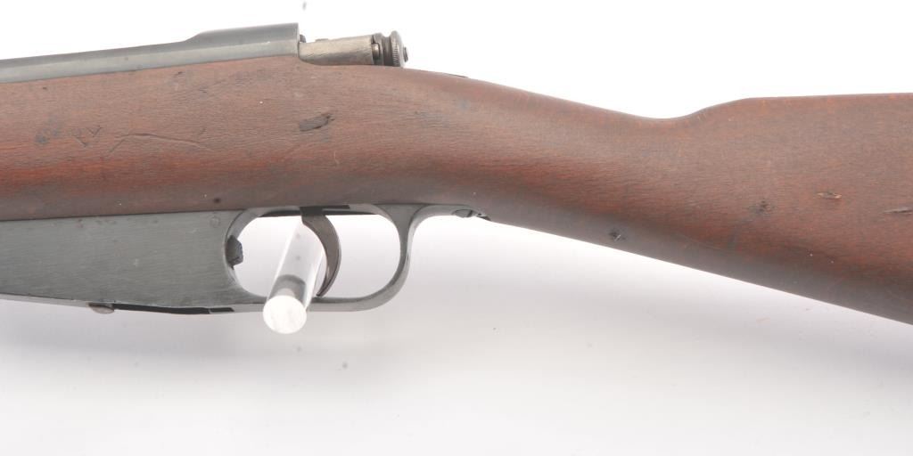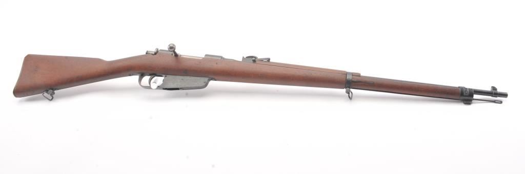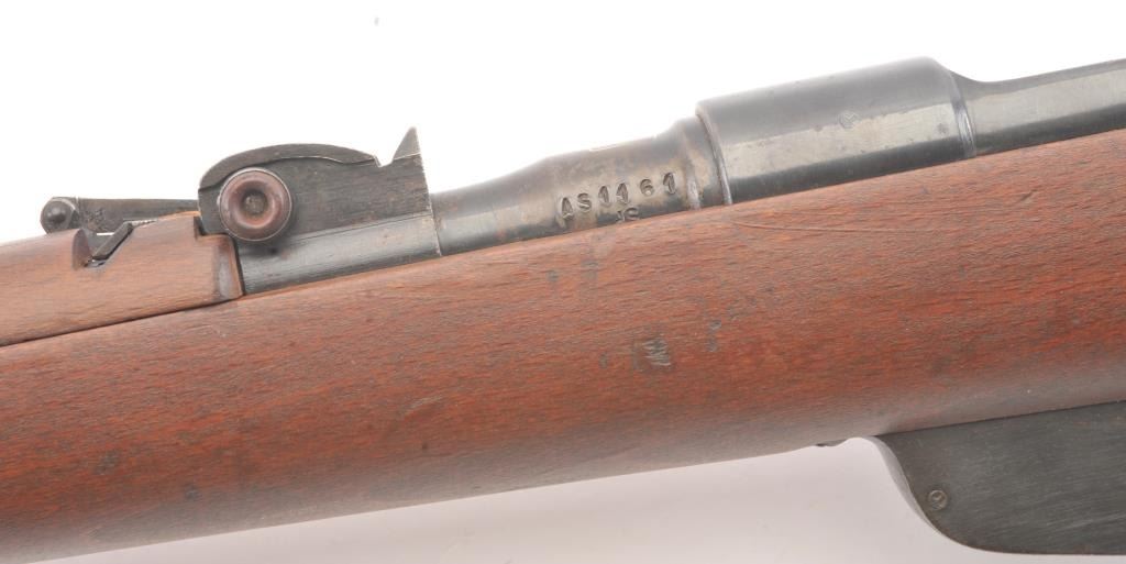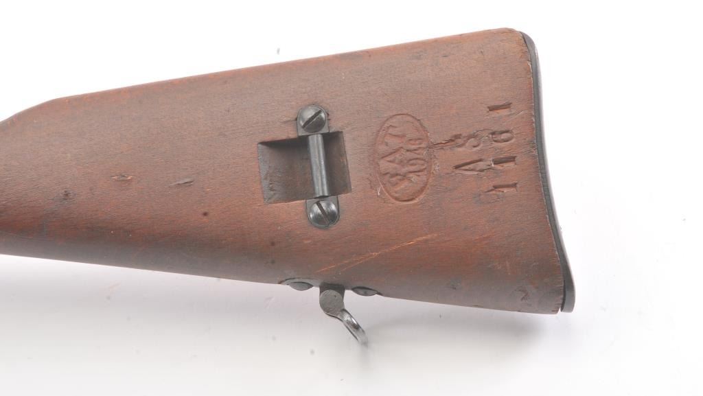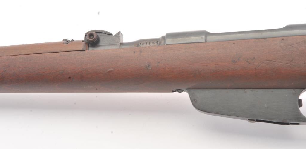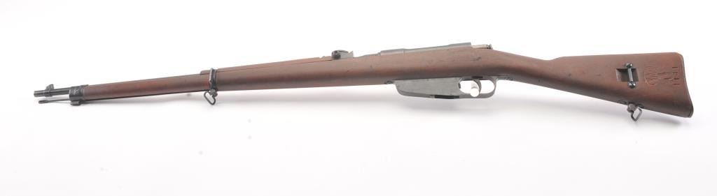 Carcano model 91/41 #AS1161 , 6.5x52 Carcano cal., 27 1/2" barrel, blued finish, smooth walnut stock, with metal butt plate. Rifle is in near excellent condition overall, showing approximately 97% arsenal finish.Bore is very good, action is good, stock is near fine. Barrel shows a 'FAT 43' on the top of the chamber, and stock shows a 'FAT 1946' cartouche on the left side of the butt along with the serial number. (C&R) Est.$350-700