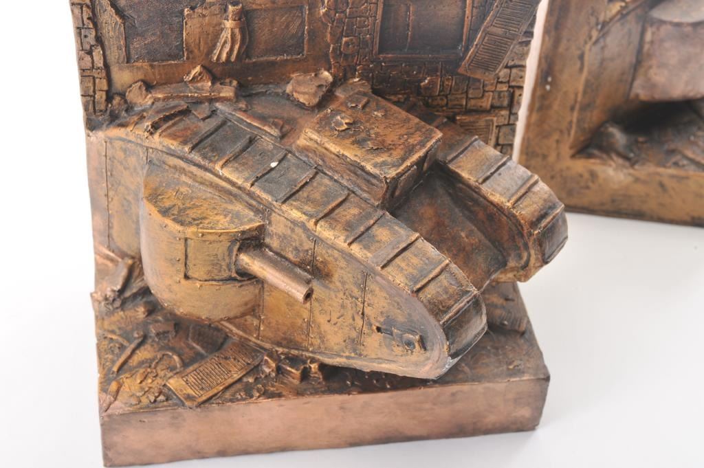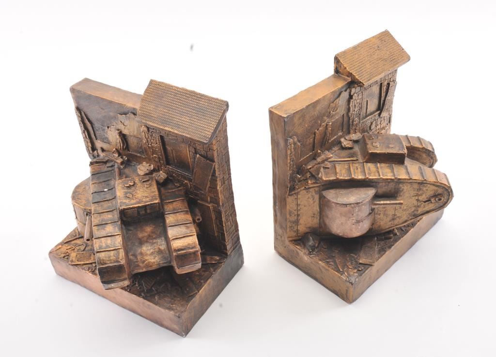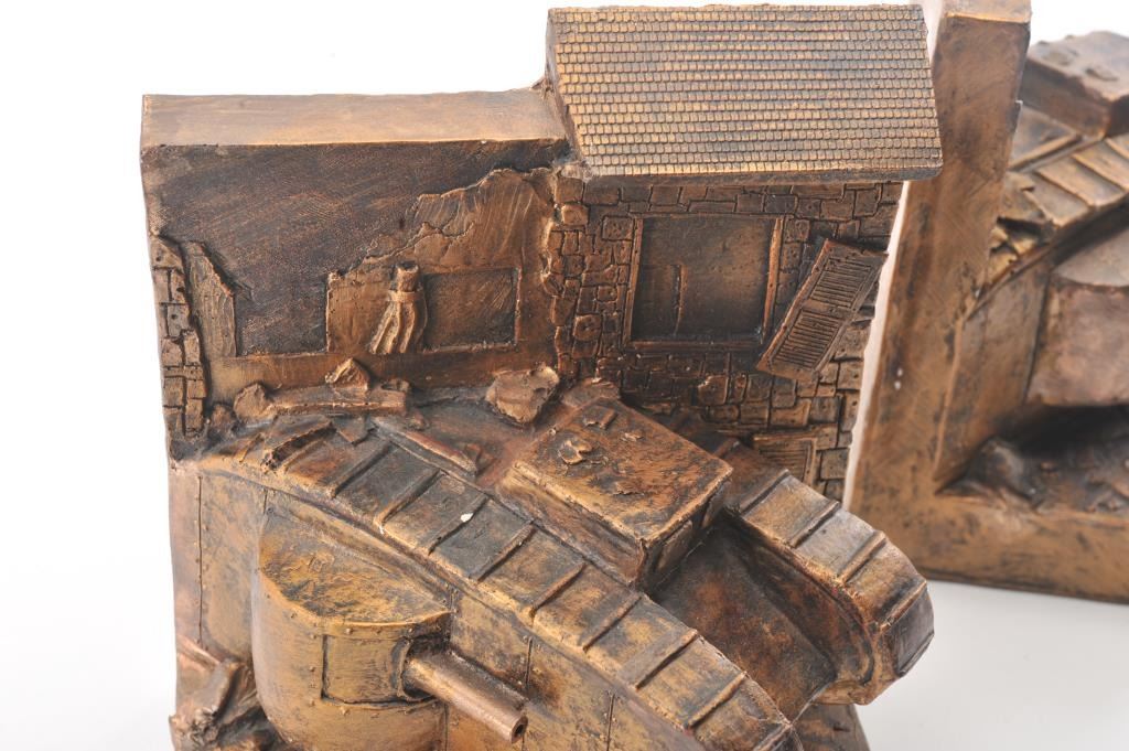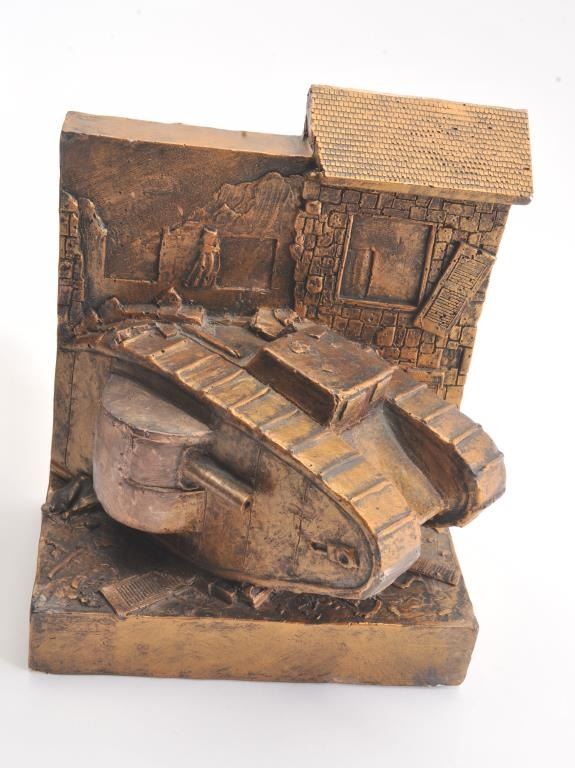 Artist made signed original Paris Sculptures of WWI tanks signed “Jan Bright Rays (Tampa, FL)”. Minor flecks and very slight losses. Measures 10” x 8 ¼”. Est.: $100-$200