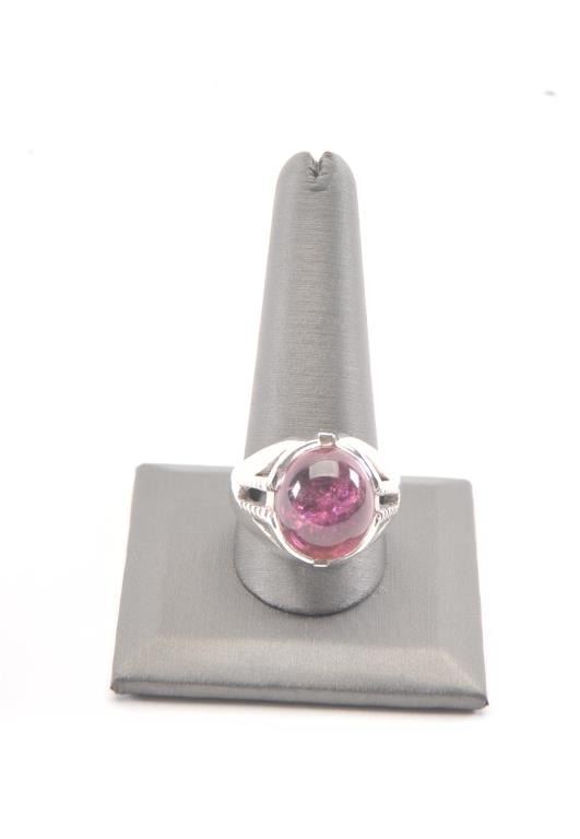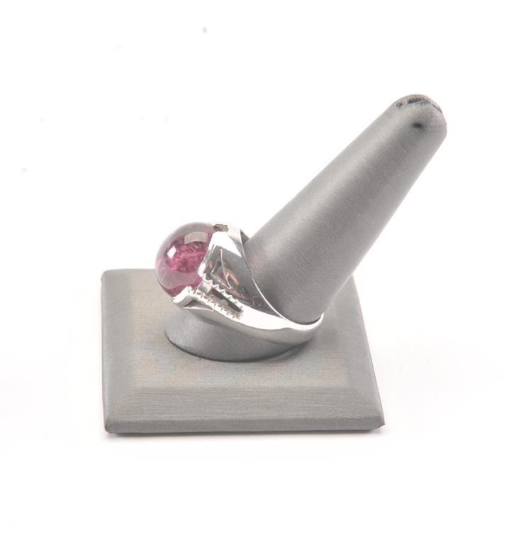 14K White Gold Ring set with natural purple/pink tourmaline in 14K mount weighing 16.4 grams. Est.: $2500-$5000
