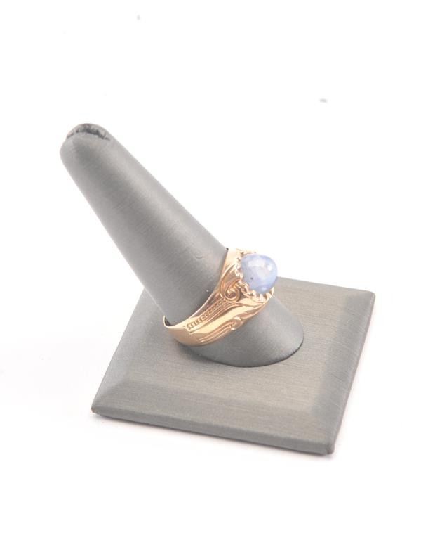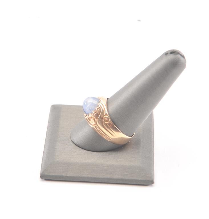 14K Rose Gold vintage man’s ring with sapphire. 11.1 grams gold. 7.4 CT star sapphire violetish blue. Est.: $4000-$8000