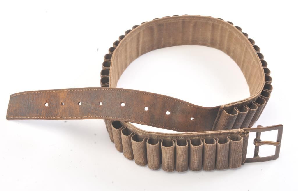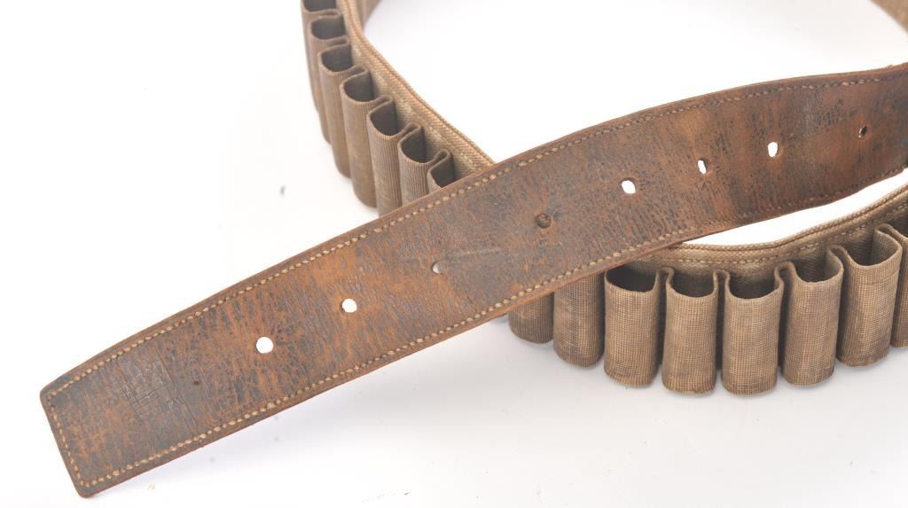 U.S. Issue early prairie cartridge belt from Custer era with square brass, buckle, and 46 loops. Good to very good condition overall. Est.: $600-$1200