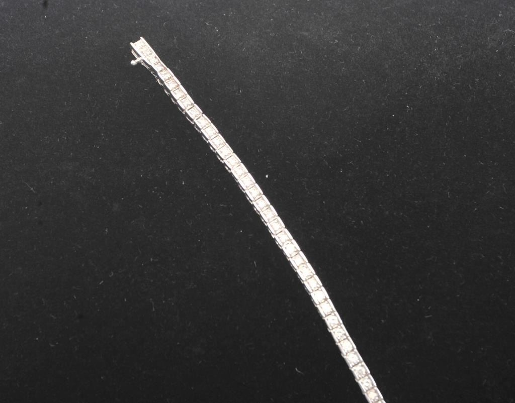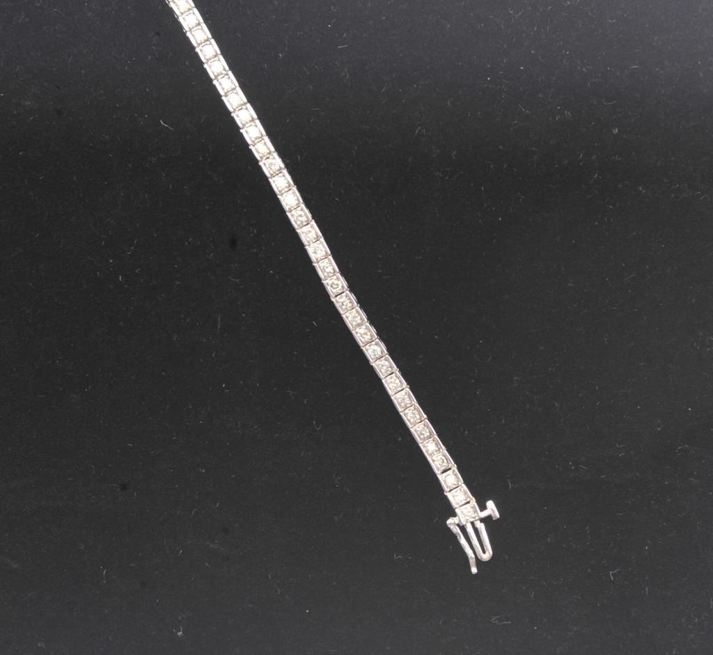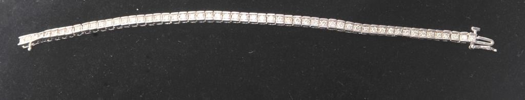 18K White Gold and diamond bracelet. Marked .750, 9 grams gold. 1.30 CT diamonds. AGL appraised $3,788. Est.: $4000-$8000