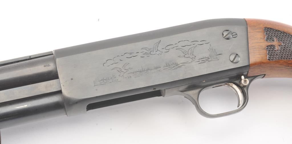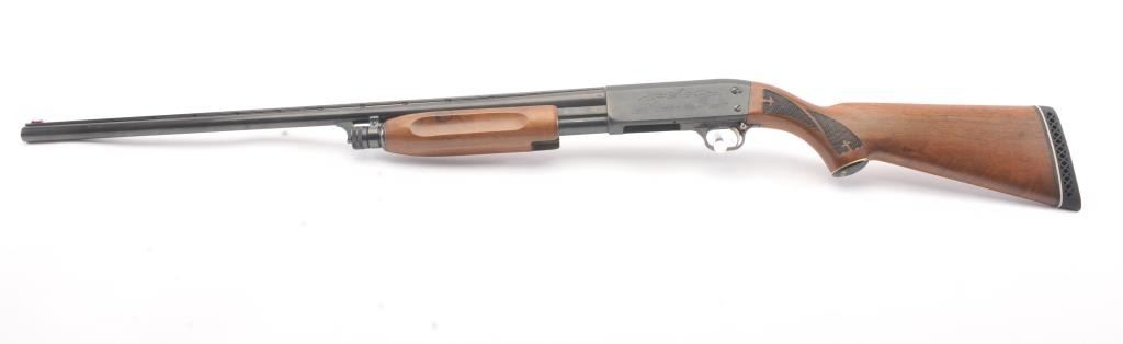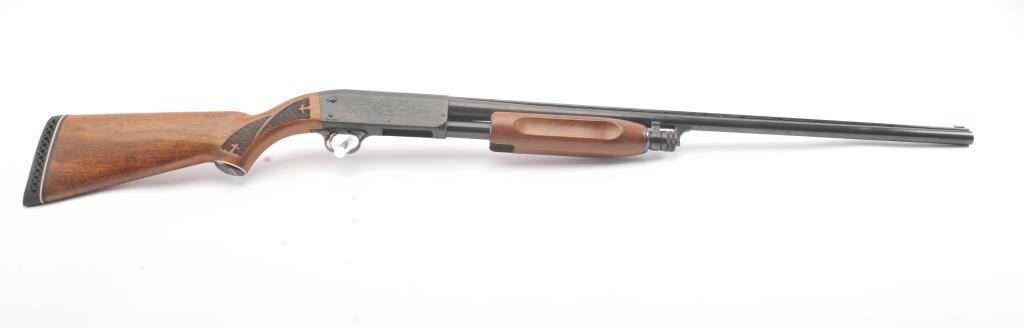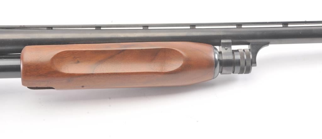 Vintage Ithaca Model 37 Featherlight Pump Action Shotgun in 16GA with a 28” vent rib barrel choked Modified. White line recoil pad added and measures 14 ½” to the end of the pad. Very good used condition with 95%+original finish. The stocks are at least very good. Minor sign of use and storage in estate. The action is good and mechanically sound with bright bore. Desirable in 16GA and not often found. Est.: $250-$500
