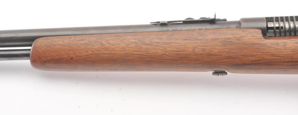 Savage Semi-Auto Rifle in .22 caliber needing minor repair and possibly parts. Non-operating. The metal and wood is good. Similar to Mossberg patents. (Modern) Est.: $75-$150