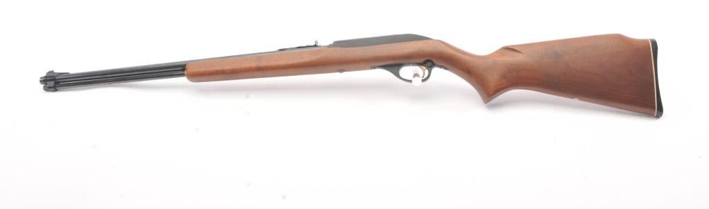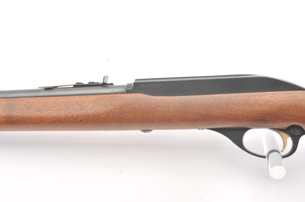 Marlin model 99C, #69283919, .22 LR cal., 22" micro-groove barrel, blued finish, smooth walnut stock, with plastic butt plate. Rifle is in excellent condition overall, showing 98% original finish. Bore is bright, actionis good, stock is about fine. These are one of the best selling and most reliable 22 rifles ever produced. (Modern) Est. $150-300