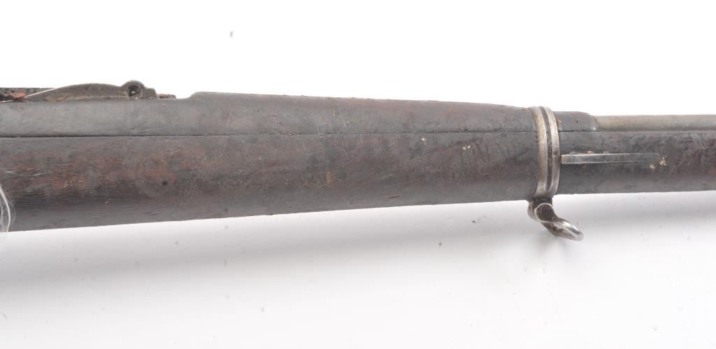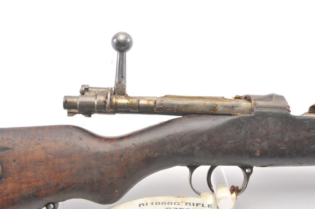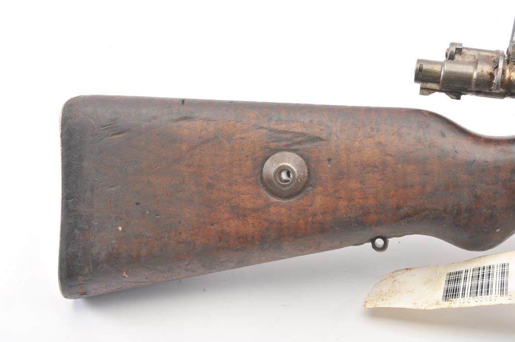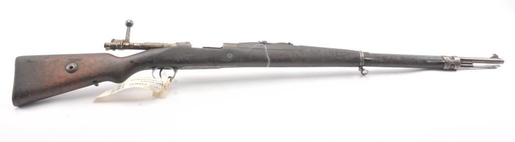CZ model M98/22 Czech Mauser, #A5955, 8mm Mauser cal., 31 1/2" barrel, blued finish, smooth walnut stock, with steel butt plate. Rifle is in fair to good surplus condition, still covered in cosmoline. The stock isgood showing no cracks. The metal surfaces show little remaining original finish. Import marked. (Modern) Est. $200-400
