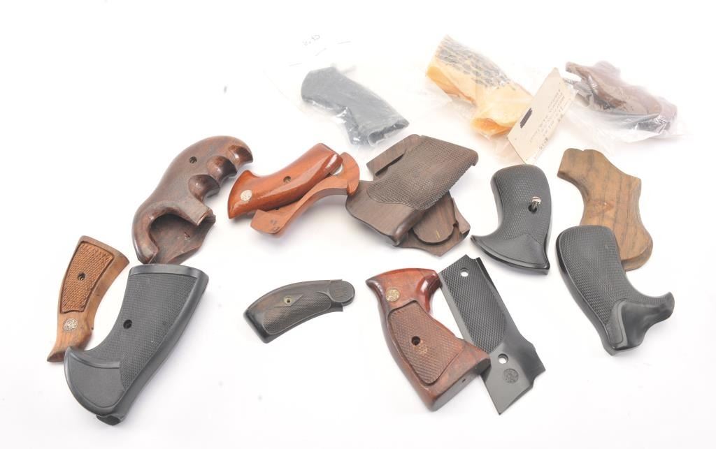 S&W Collector’s lot of factory and replacement grips. 20 pairs plus singles. Varied conditions and ages. Est.: $150-$300