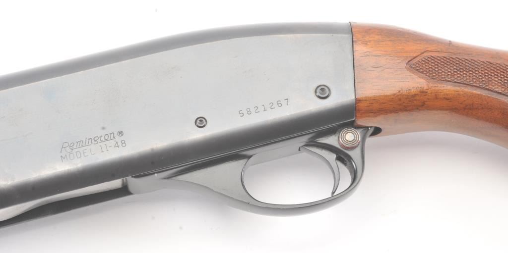 Remington 11-48 Semi-Auto Shotgun in 20 GA with a 28” barrel choked full, S/N 5821267. Factory specifications and factory butt. 95%-98% original blue with very good plus stock showing minor scratches and dings. Good mechanically with bright bore and showing only minor use and little aging to the metal. (C&R) Est.: $300-$600
