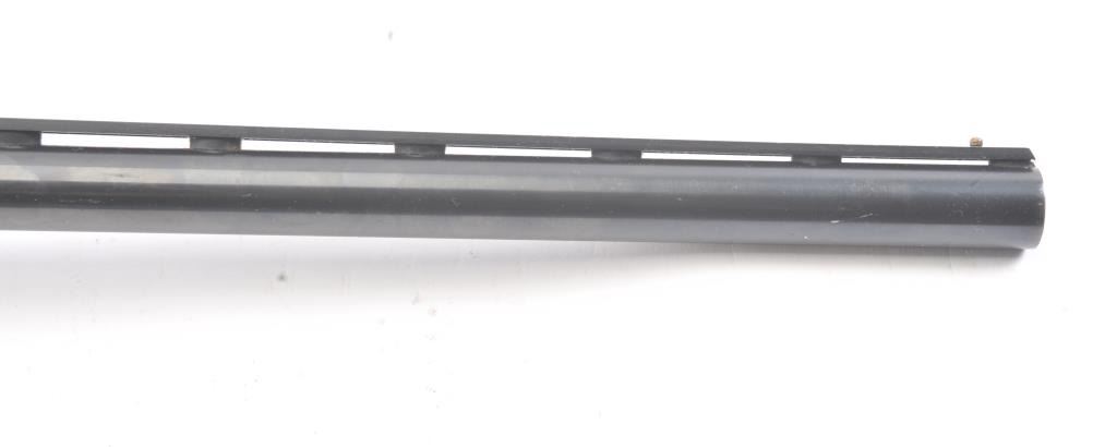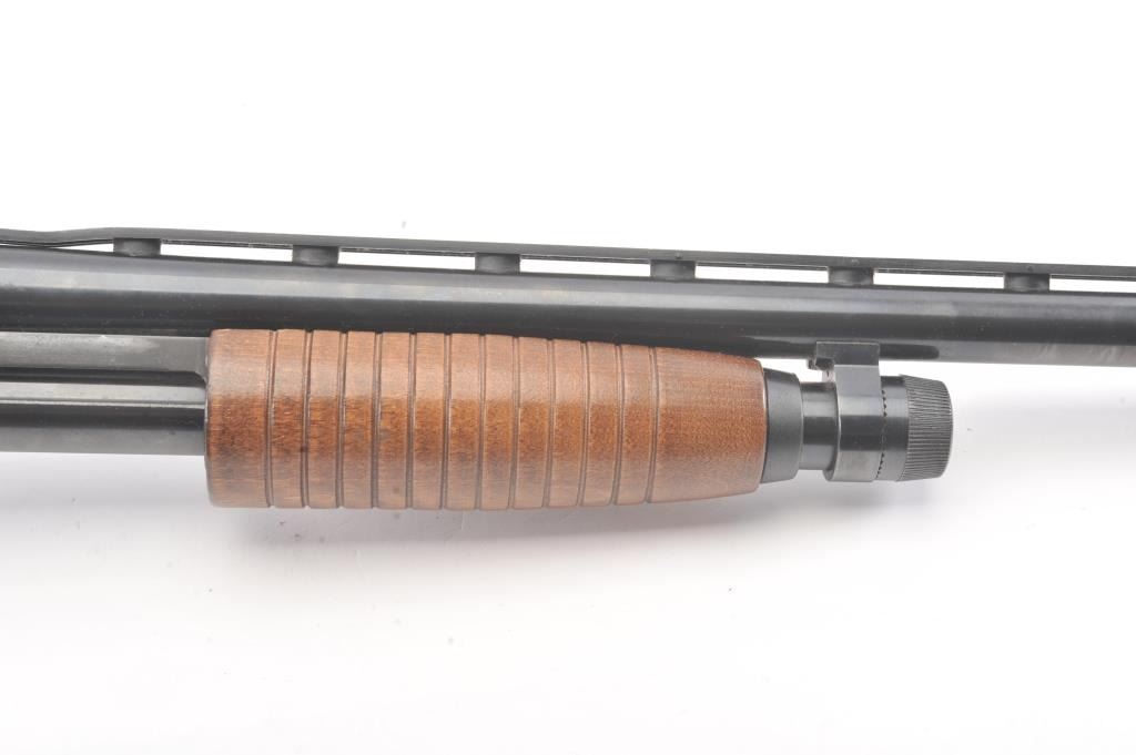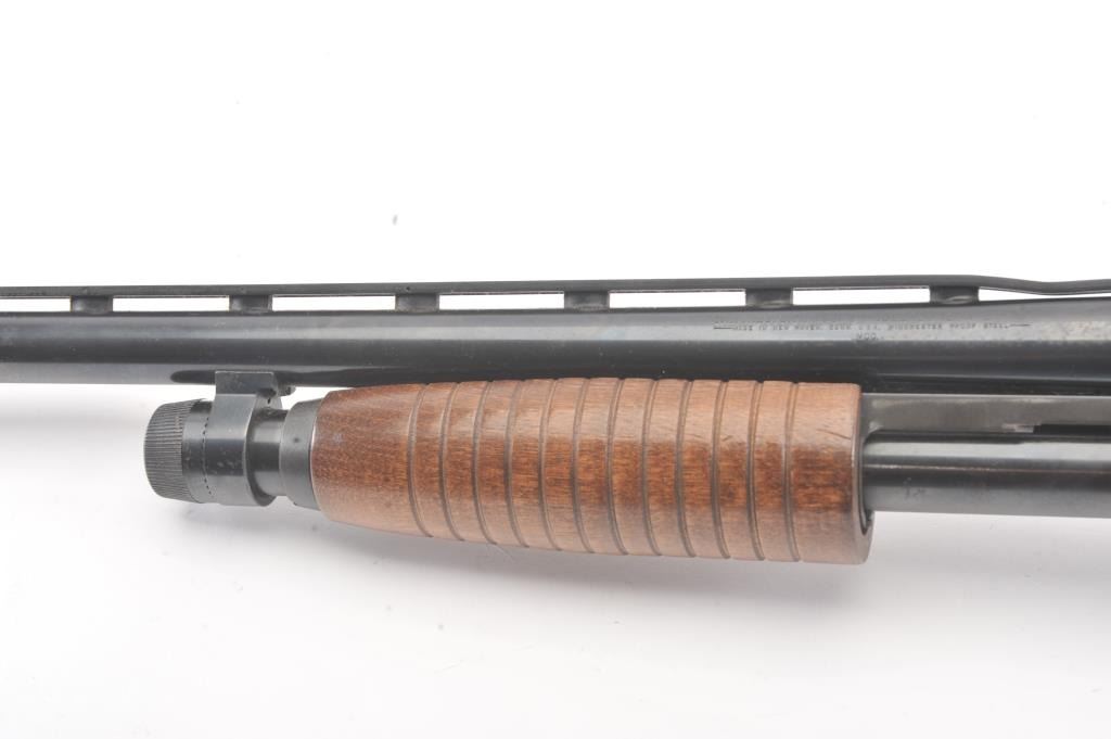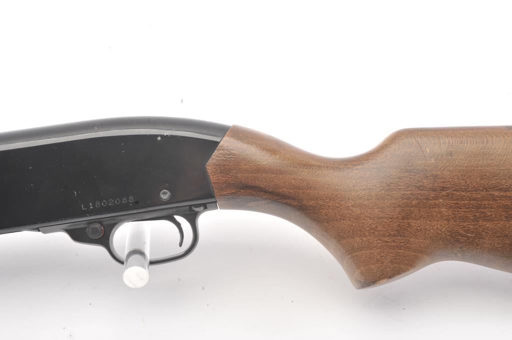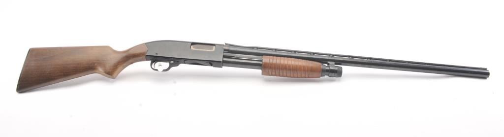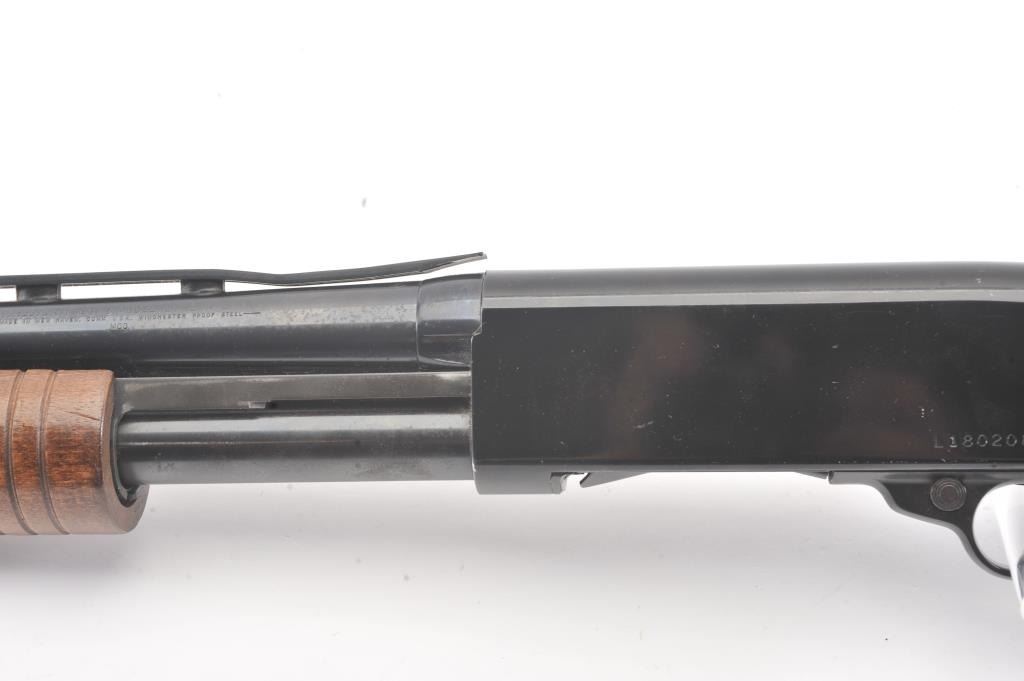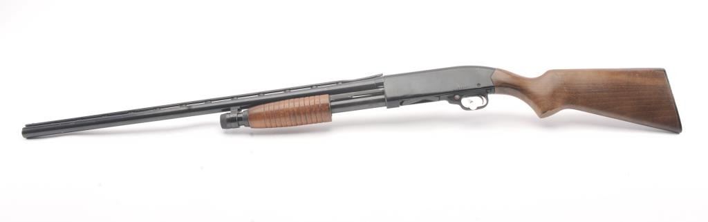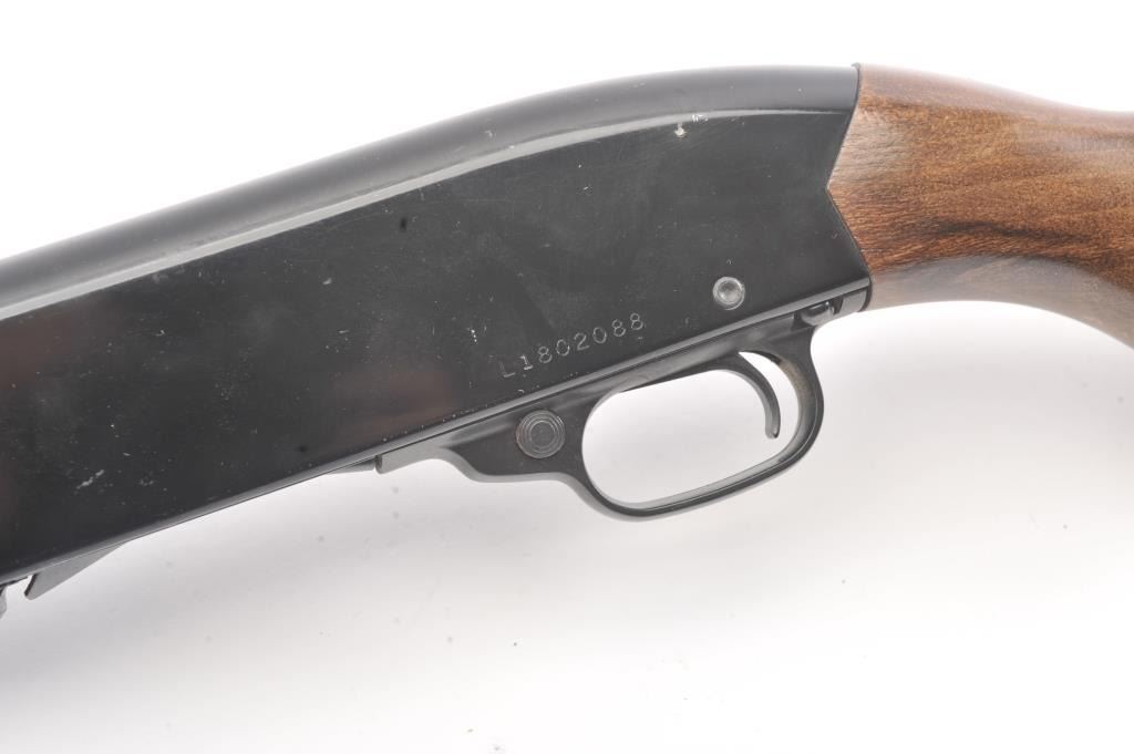 Winchester Ranger model 120 pump action shotgun, #L1802088, 12 Ga, 28" vent rib barrel, blued finish, smooth wood stock, with plastic butt plate. Shotgun is in good to very good condition overall, showingapproximately 95-97% original finish, with minor freckling. Bore is good, action is good, stock is very good plus. The rear portion of the rib is separating and needs to be resoldered. (Modern) Est. $125-250