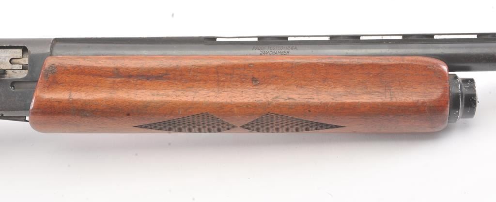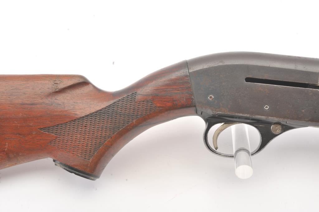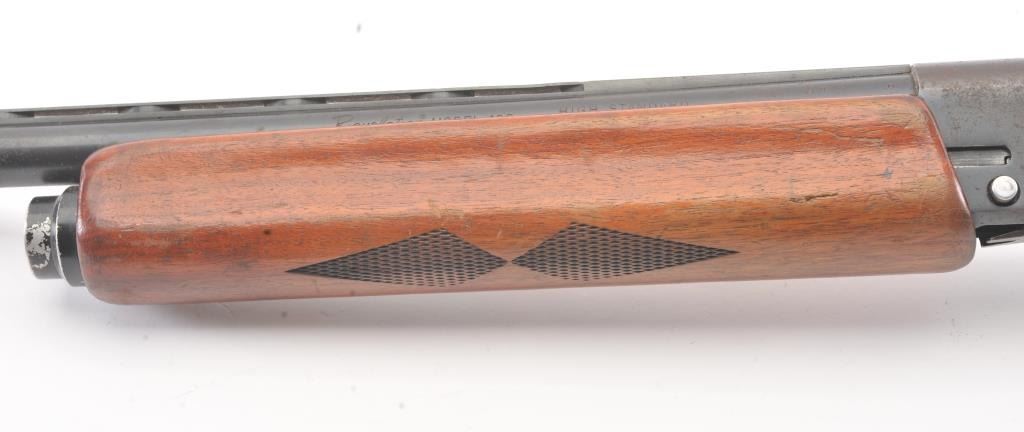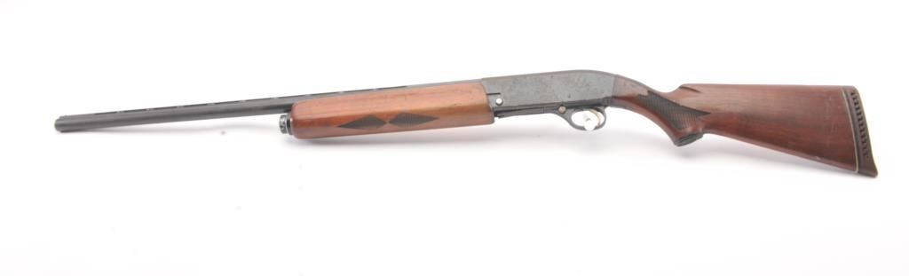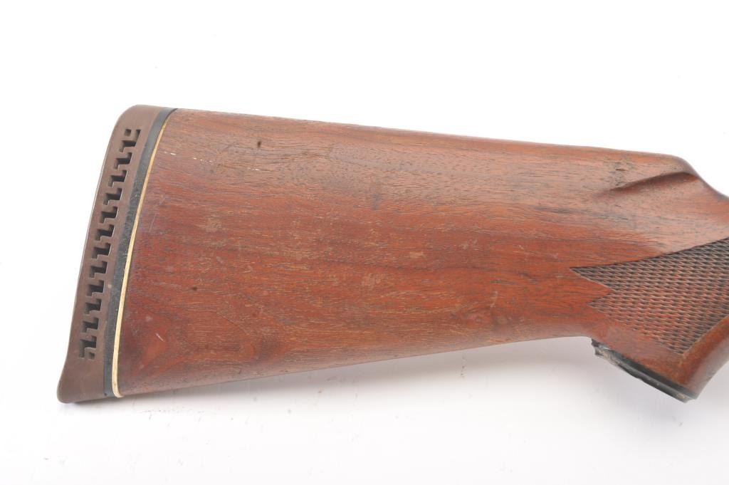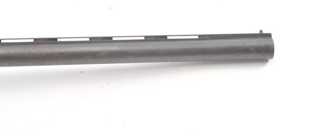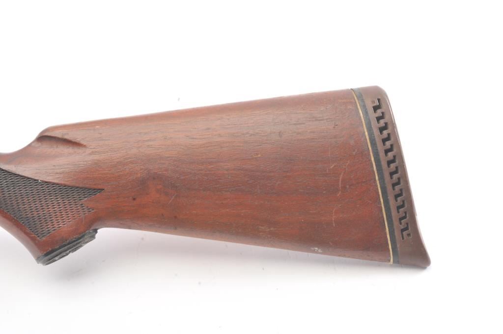 Vintage Hi-Standard Revelation Model 425 Semi-Auto Shotgun in 12GA with a 28” vent rib barrel choked about modified. Fair to good overall used with coating of light rust and erosion. The stocks show scratches, dings and mars with a small hair line crack at the juncture of stock to the frame which is tight. Needs cleaning badly from an estate. Very gummy and bore is dirty. 1960s-70s made. (Modern) Est.: $150-$300