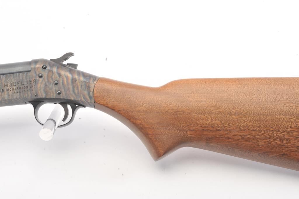 Harrington & Richardson model 158 single shot shotgun, #AJ216409, 20 Ga., 28" barrel, 3" chamber, blued finish with case hardened frame, smooth wood stock, with rubber recoil pad. Shotgun is in excellent conditionoverall, showing 99% original finish and strong case colors. Bore is fine, action is good, stock is excellent. (Modern) Est. $125-250
