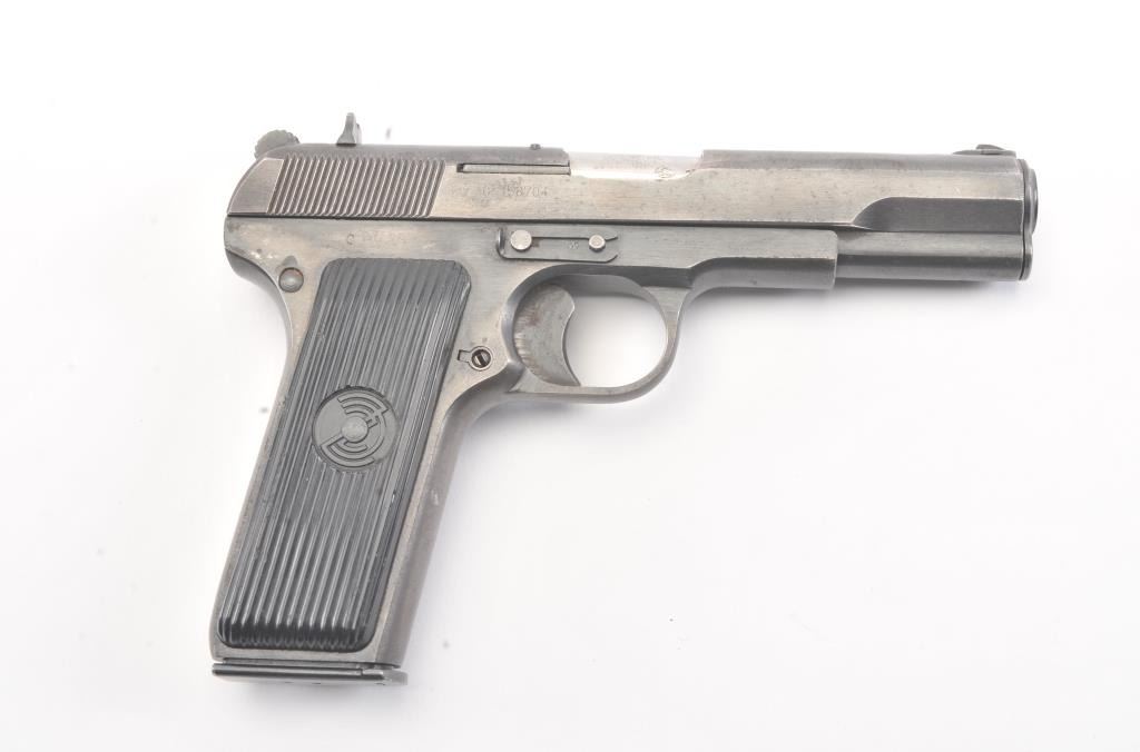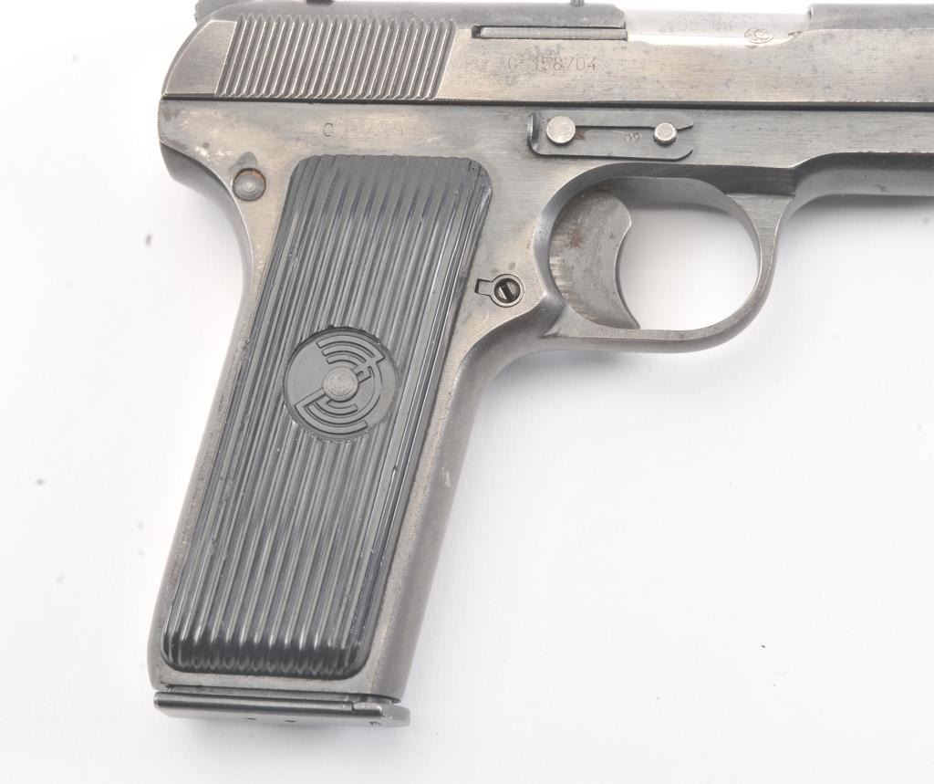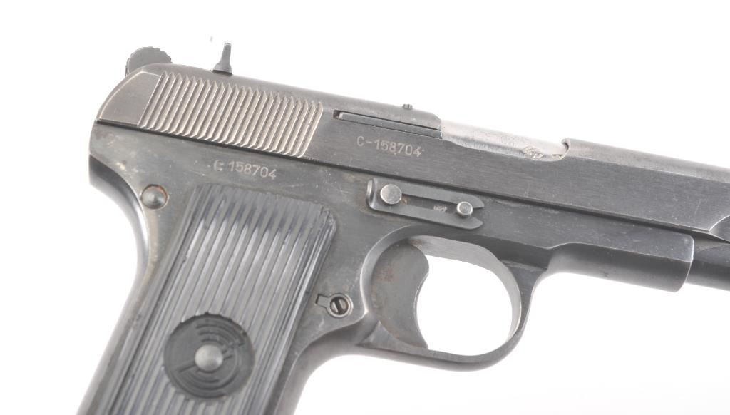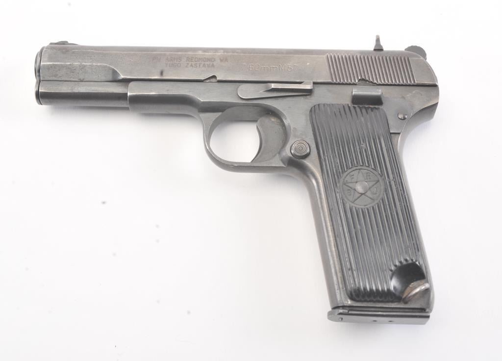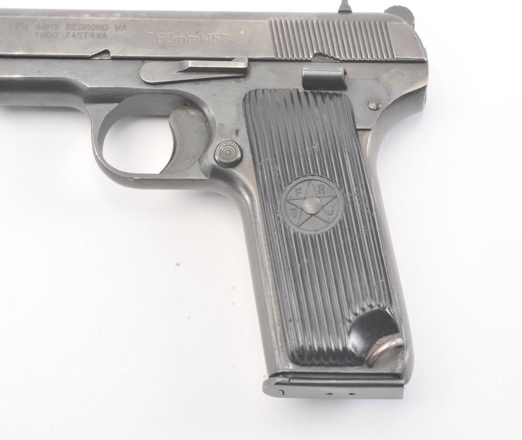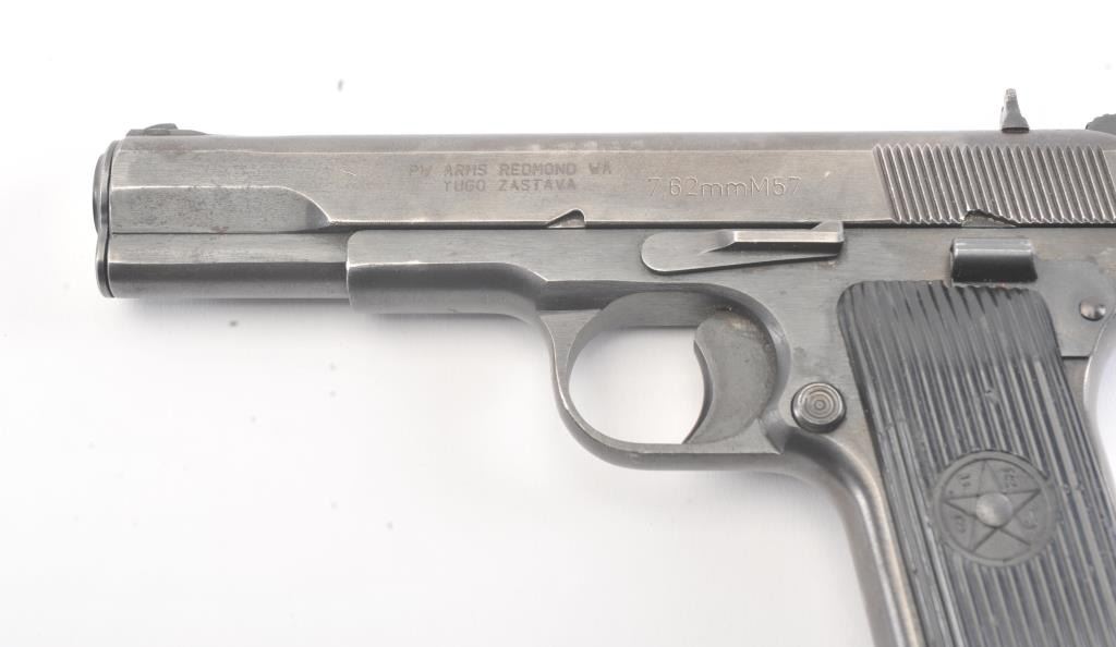Tokarev Model 57 Semi-Auto pistol in 7.62 x 57, S/N C158704. “SFRJ” and star on grips. Very good plus used condition. 85%-95% original blue. (C&R/NO PPT) Est.: $300-$600