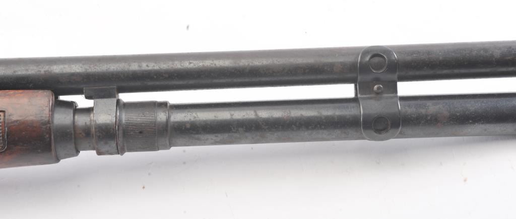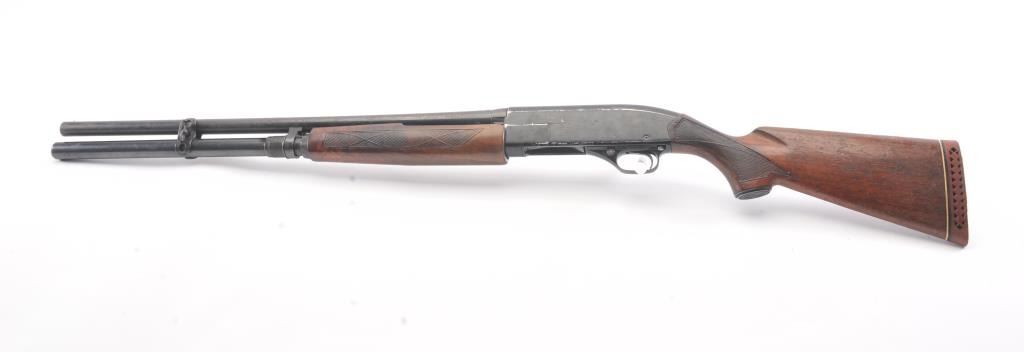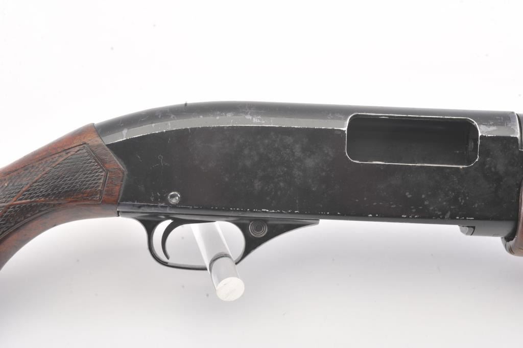 Winchester Model 1200 Pump Action Shotgun in 12 GA with a 26” shortened barrel and 27” extended magazine. Fair only with erosion and rust from duck blind. Open choke. Just what you need if the ducks are armed and start ariot!! (Modern) Est.: $150-$300