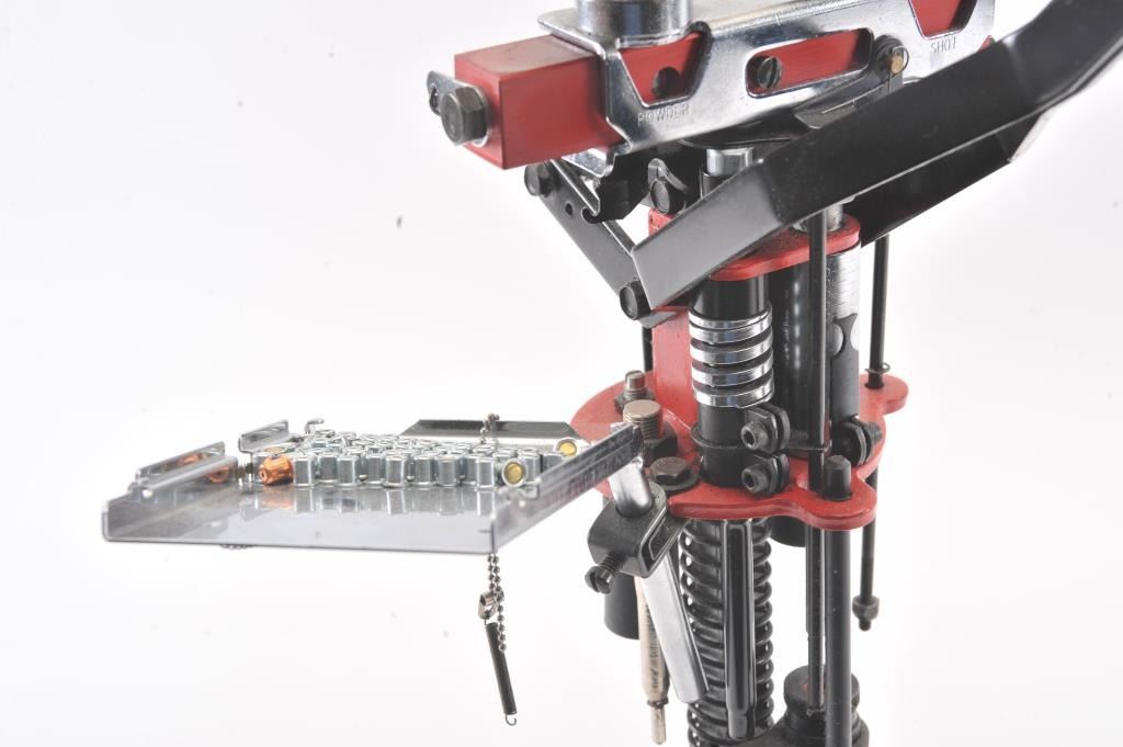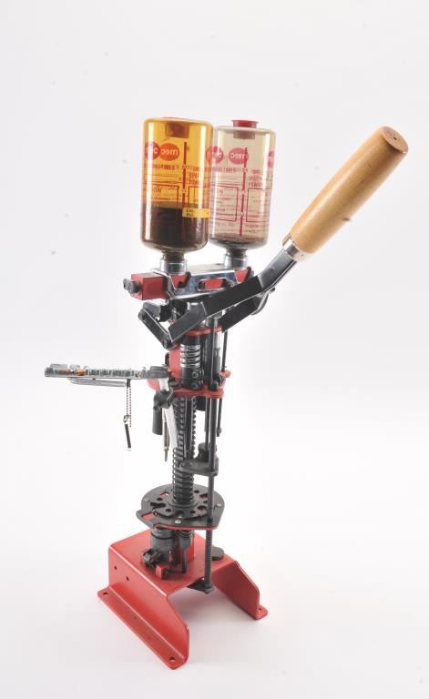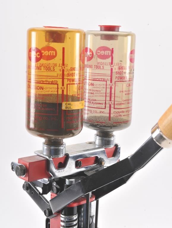 MEC 8567 Grabber 410 Ga. shotshell reloading press, produces a complete shell with every stroke of the handle. In excellent condition, the plastic cover for the primer tray is missing. Est. $75-150