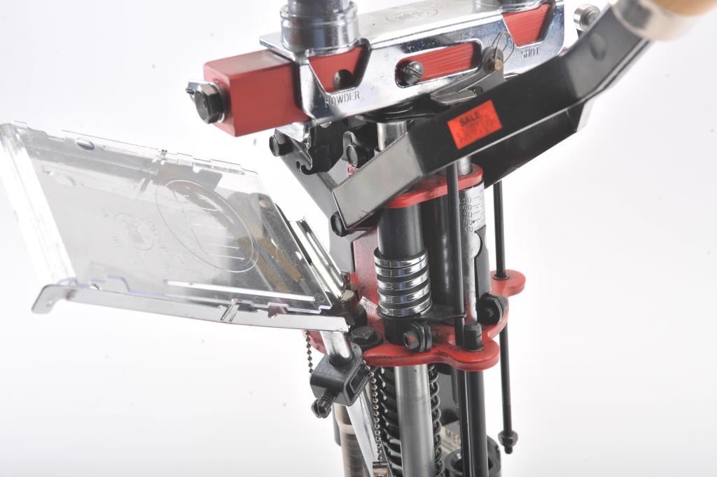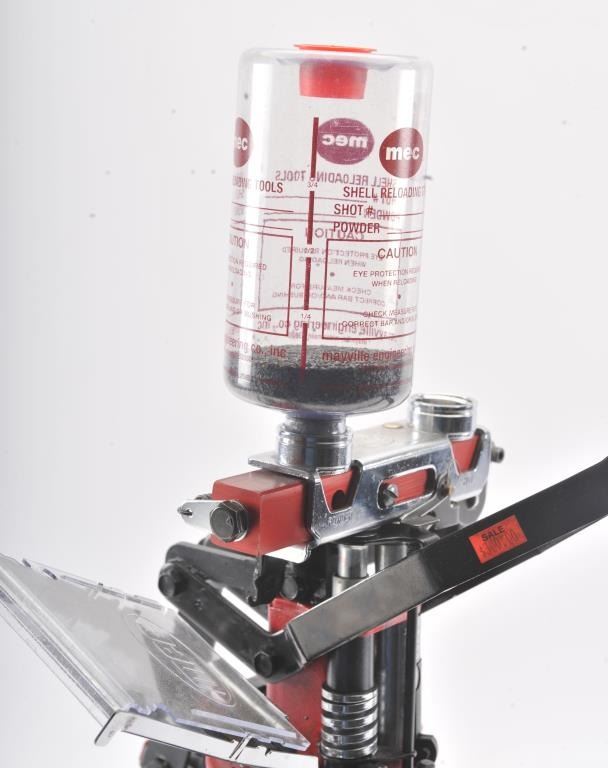 MEC 9000 auto indexing shotshell reloading press in 12 Ga., multi stage loader completes one shell with each stroke of the handle. The press is in good to very good condition overall, missing one of the bottles for shotor powder (easily replaced for about $10). Est. $150-300