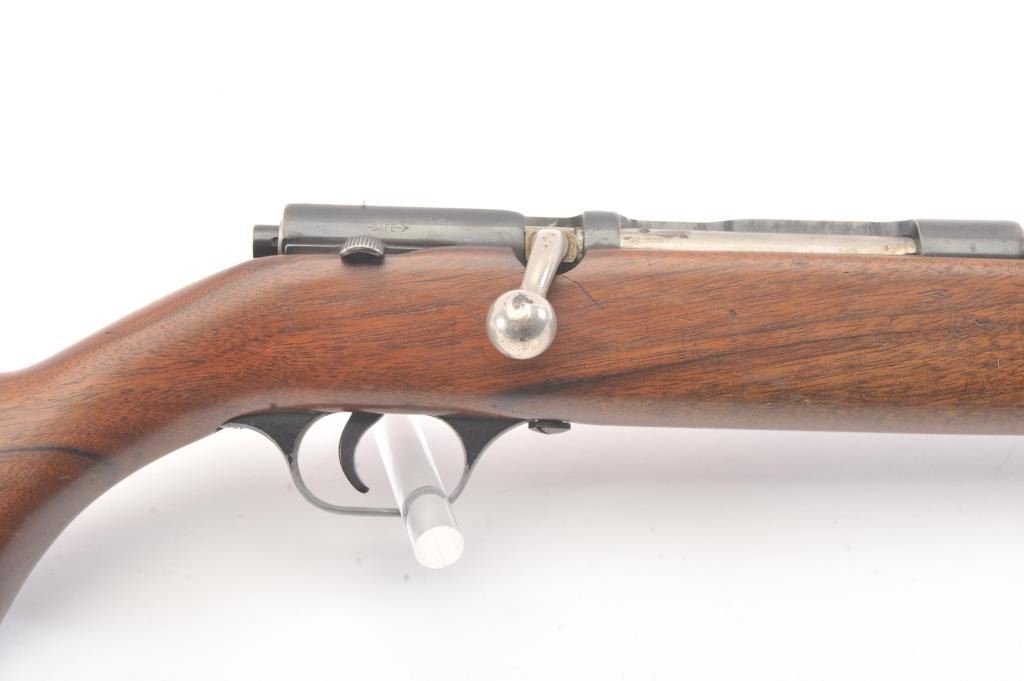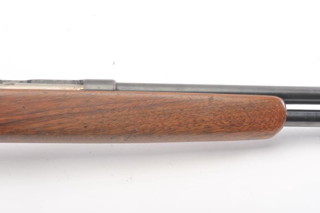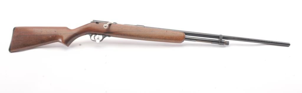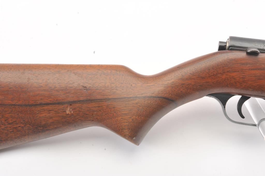 J.C. Higgins (Sears) 410 GA Bolt Action Magazine Repeating Shotgun Model 101.25. In good overall condition with marks on the barrel from case or wrapping. Magazine blocked with wood to make it a single shot.Mechanically good with good bore. “Yes Mr. Higgins!!” (C&R) Est.: $75-$150